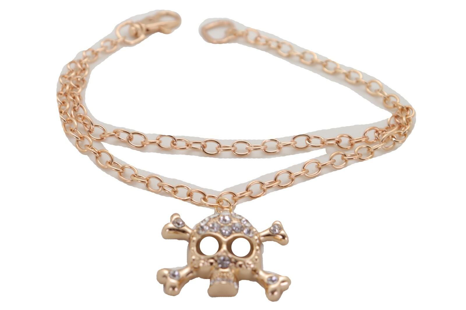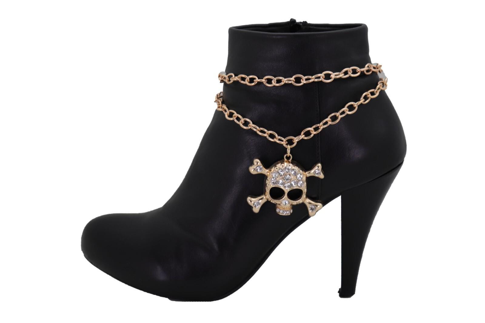 2PCS Gold Tone Boot Chain Bracelets Pair Bling Skull Charm Boot Jewelry BC154