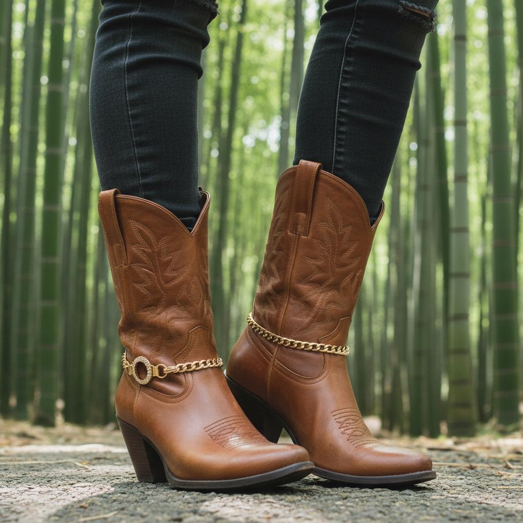 BC160 is a pair of gold-tone boot chain bracelets featuring a sparkling rhinestone circle charm that instantly upgrades ankle boots, cowboy boots, and tall boots. The curb chain gives that classic Western edge, while the circle charm adds a clean, polished bling that looks great in daylight and absolutely shows up in photos.