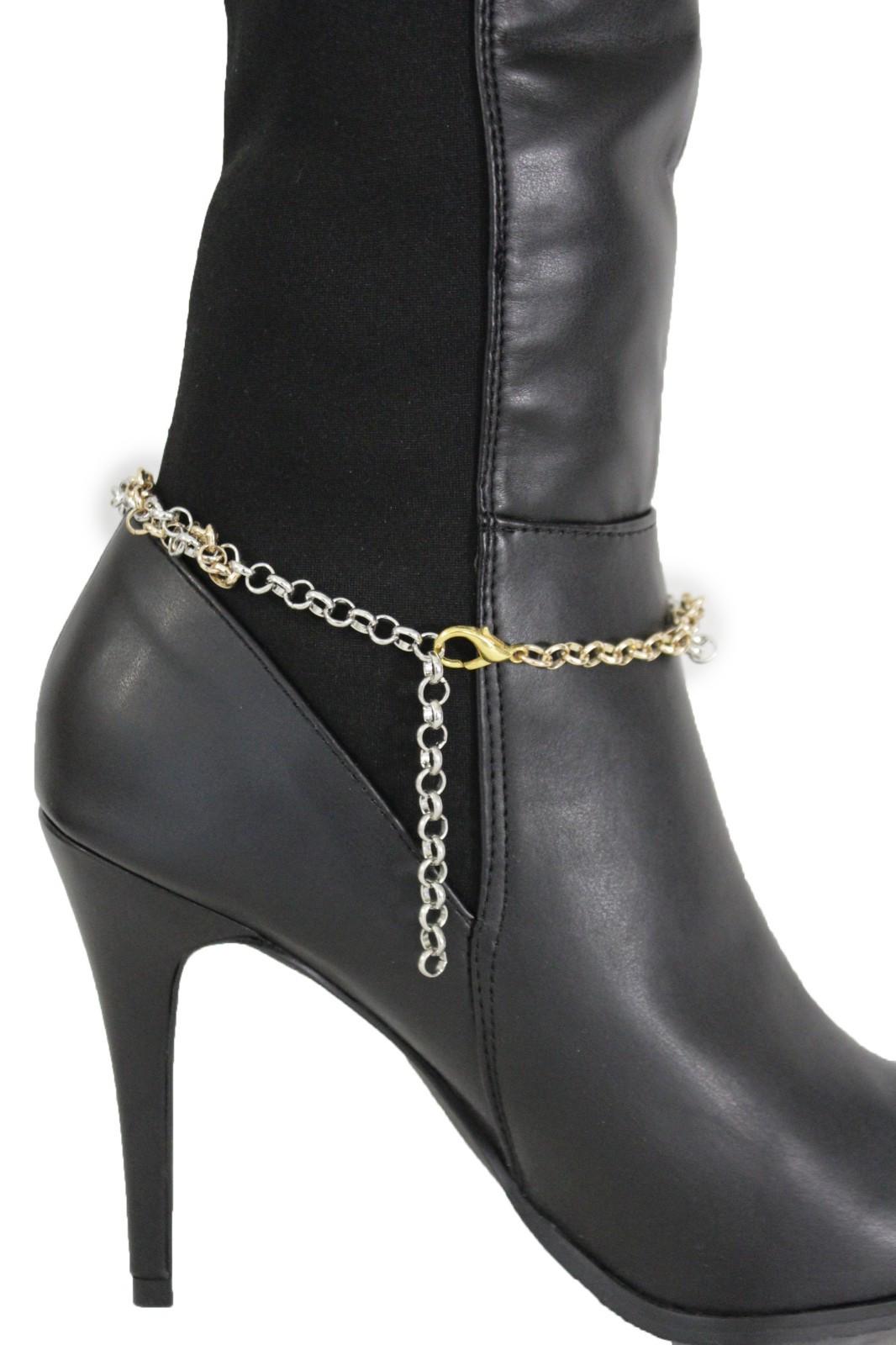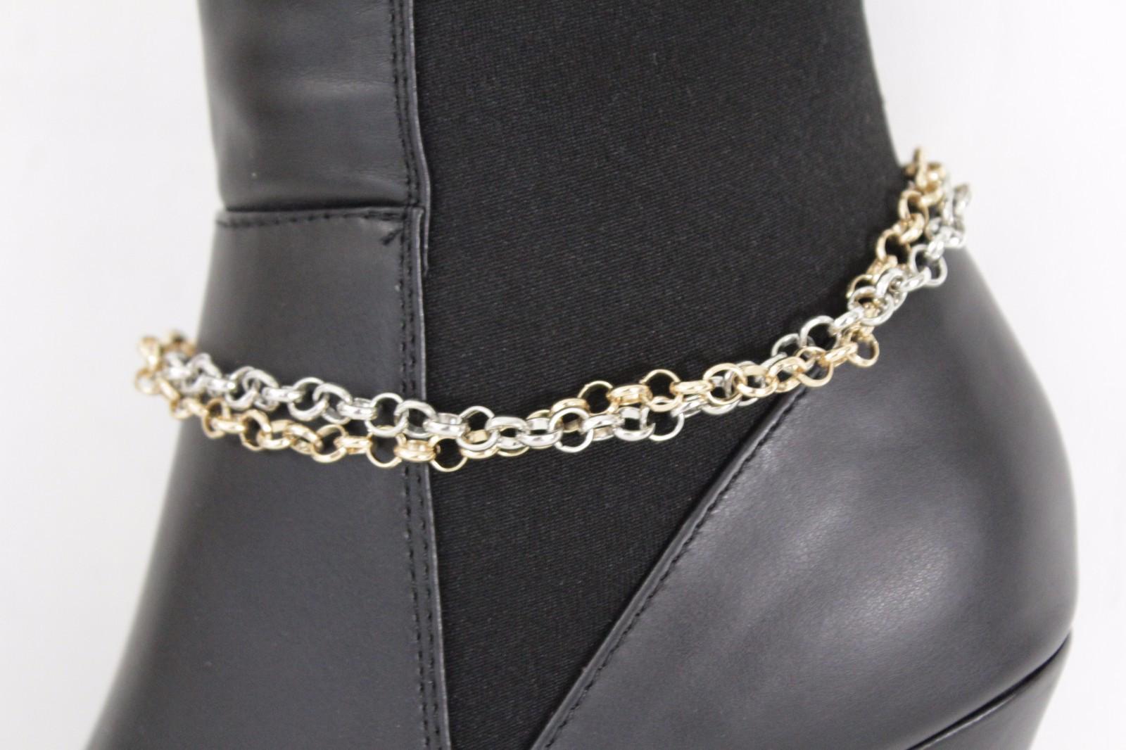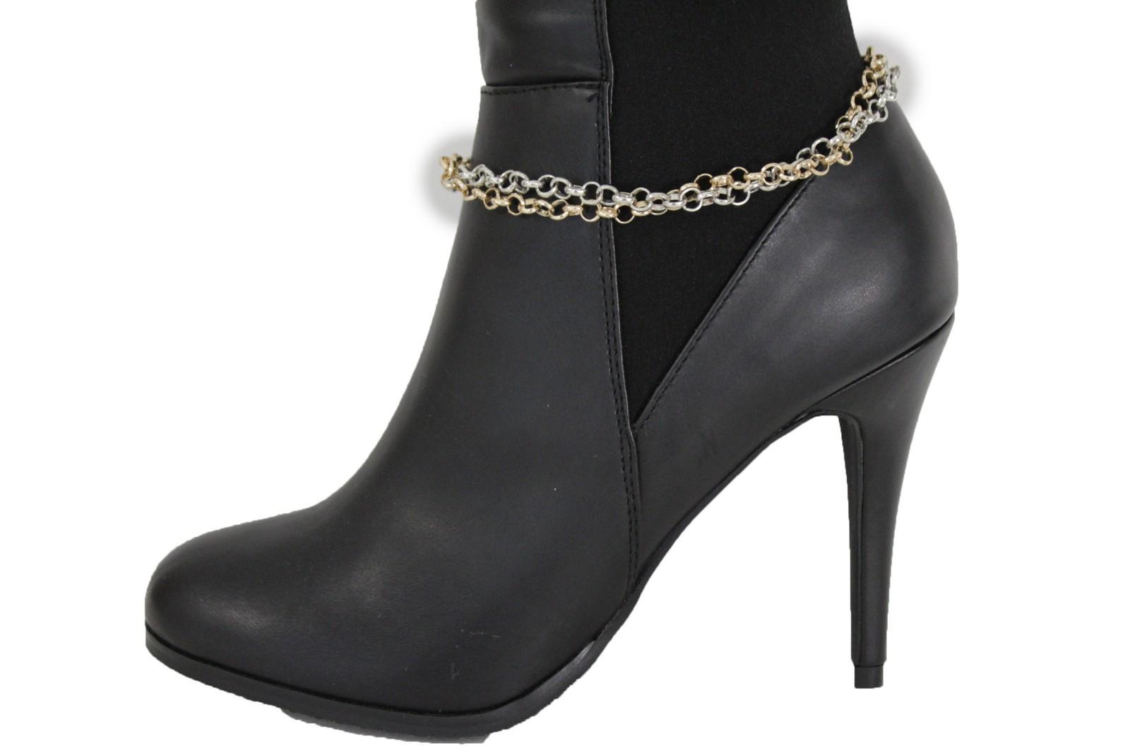 Two-Tone Gold And Silver Boot Chain Bracelet Set, 2PCS, Mixed Metal Shoe Jewelry BC161