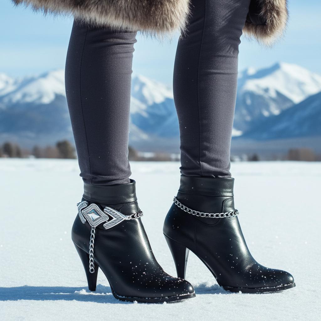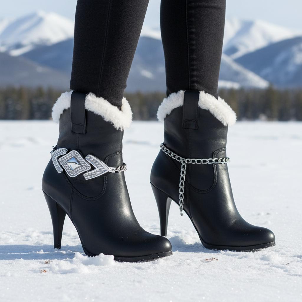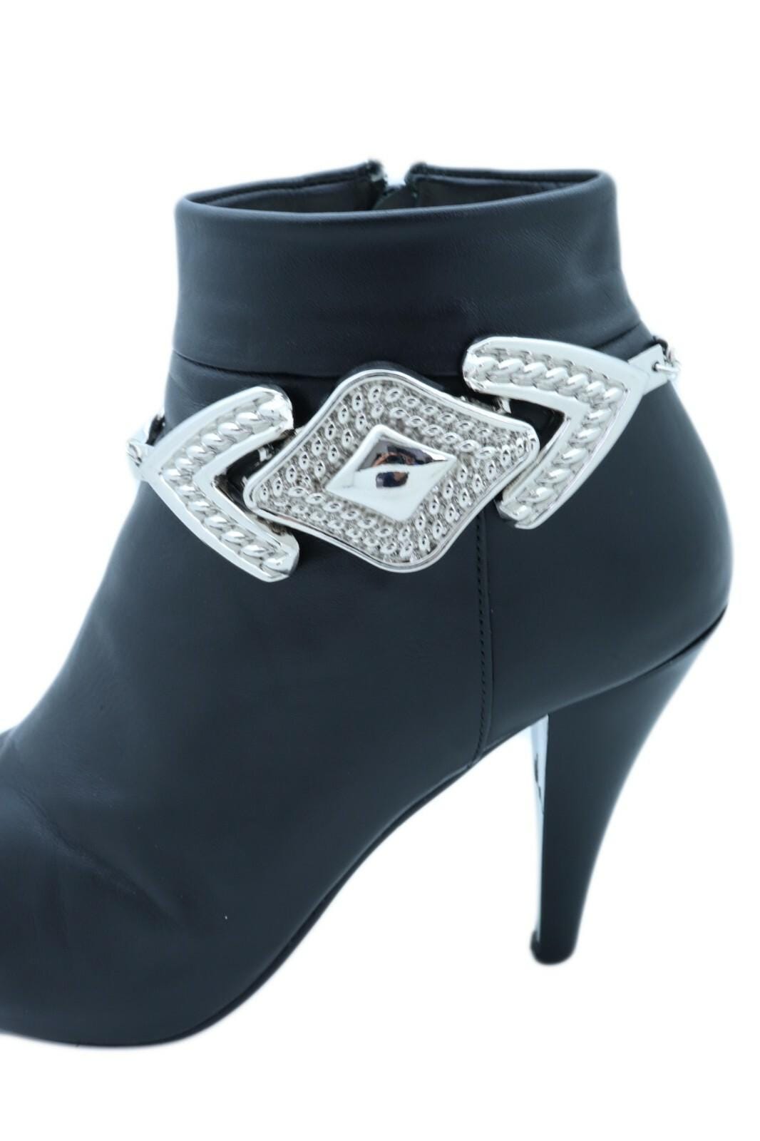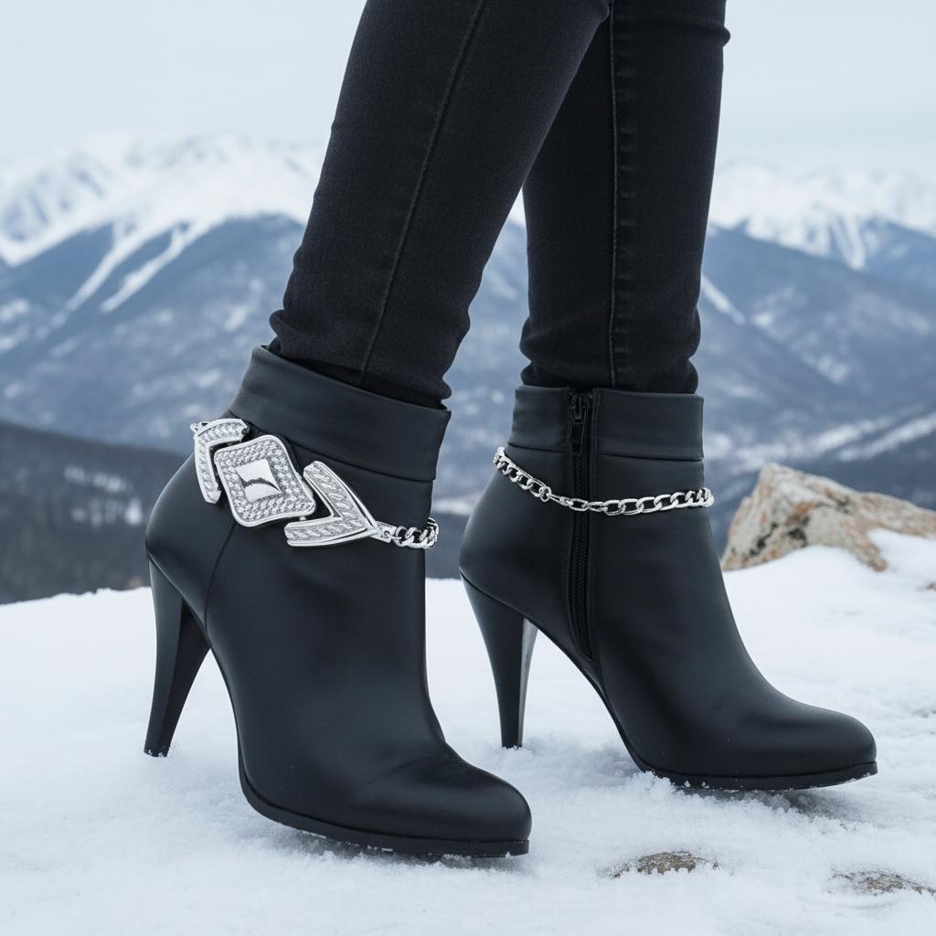 BC165 is a silver tone boot chain bracelet set made to turn everyday boots into a statement. It’s shiny, bold, and surprisingly easy to wear: metal links for texture and movement, plus an arrowhead-inspired centerpiece that makes the whole look feel intentional (like you planned your outfit days in advance, not five minutes ago).