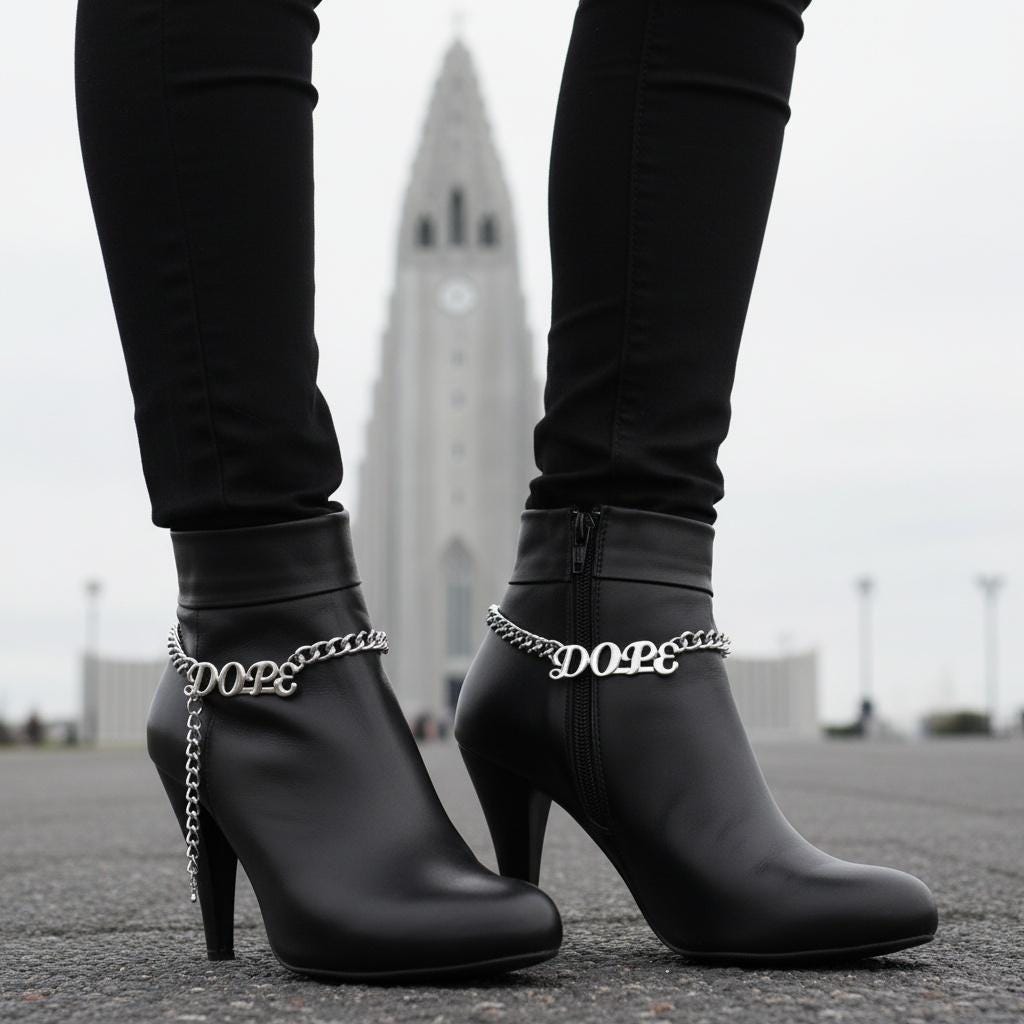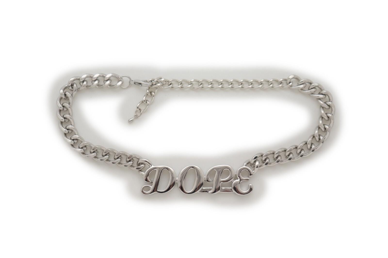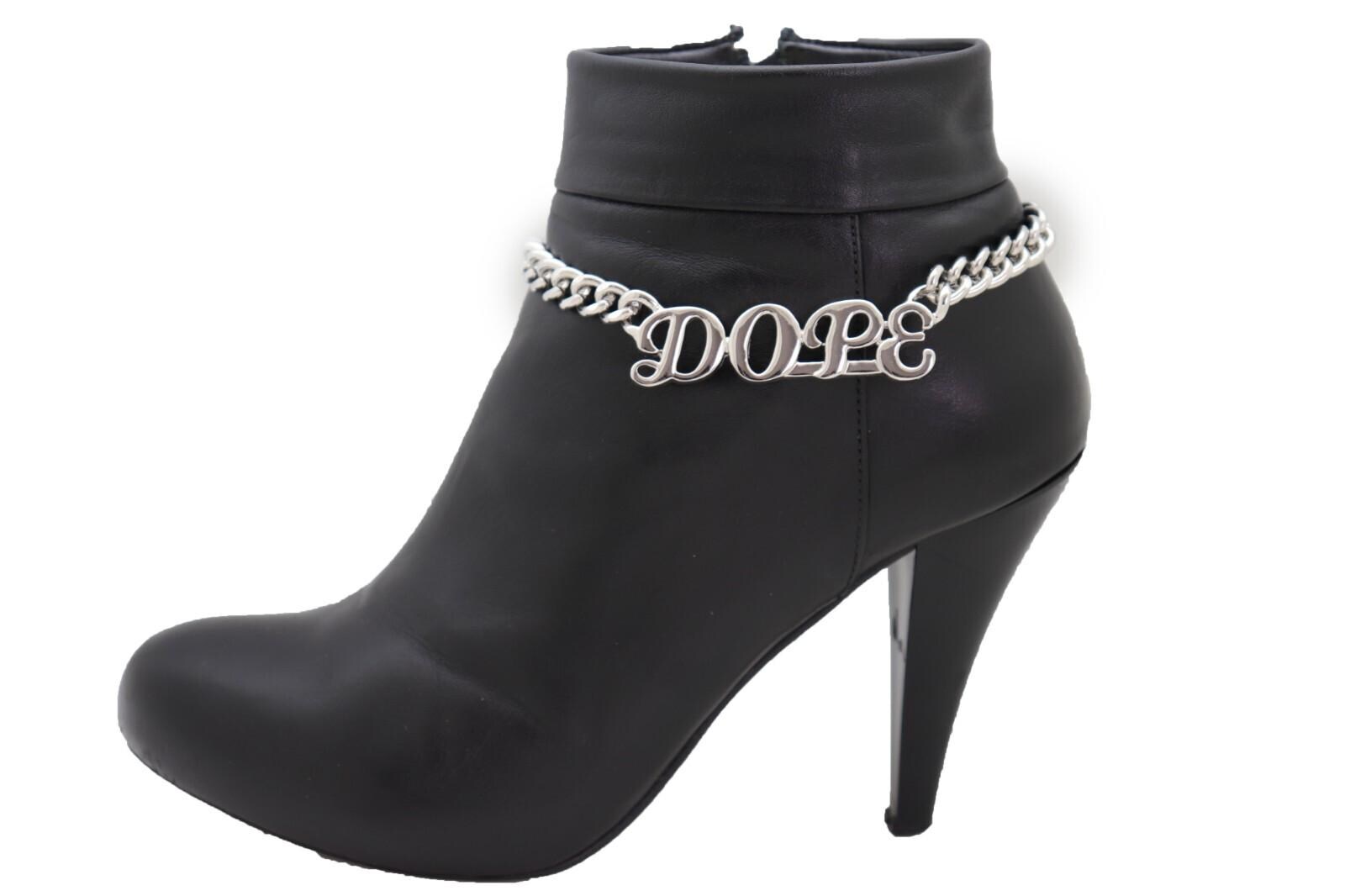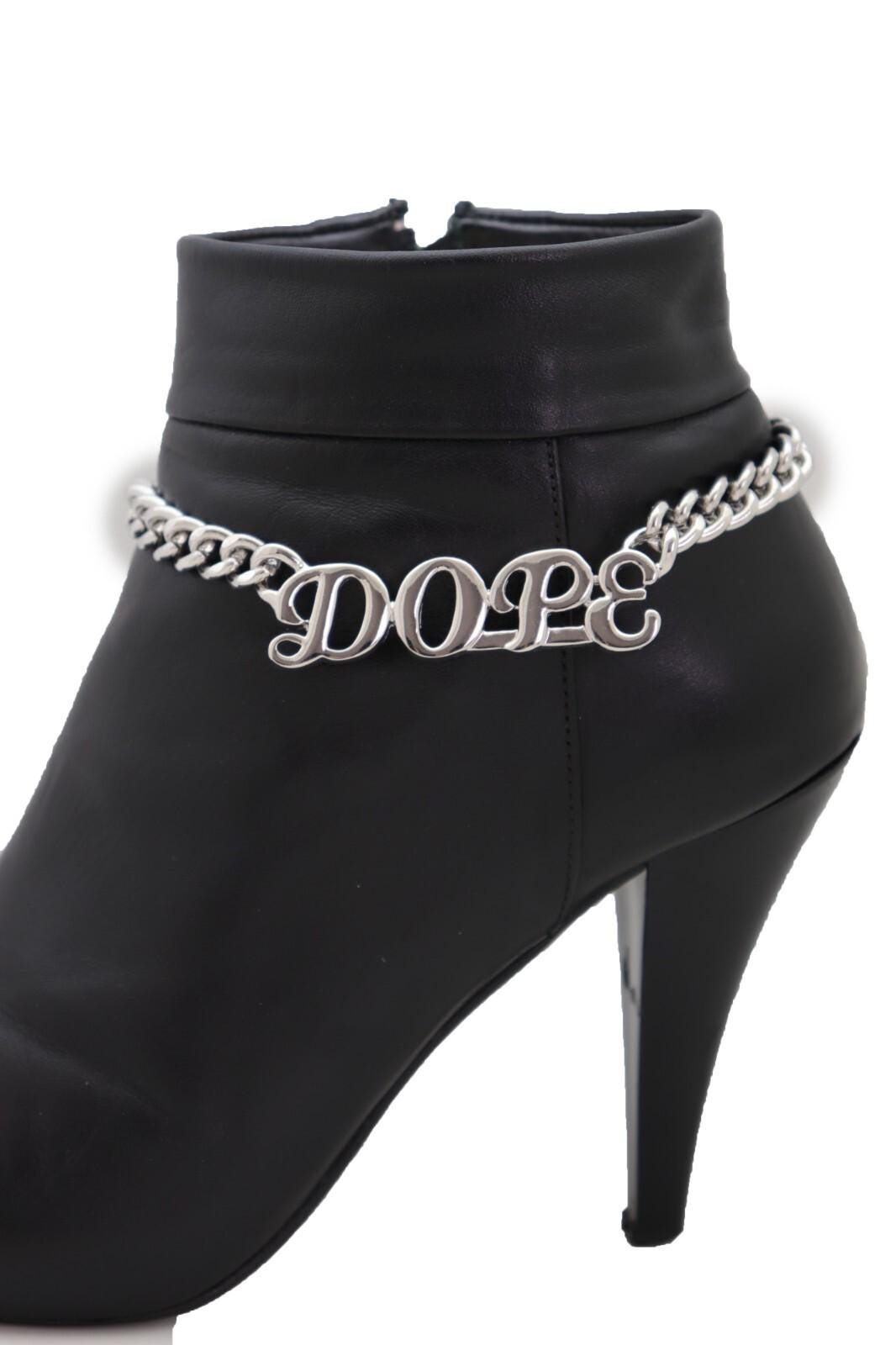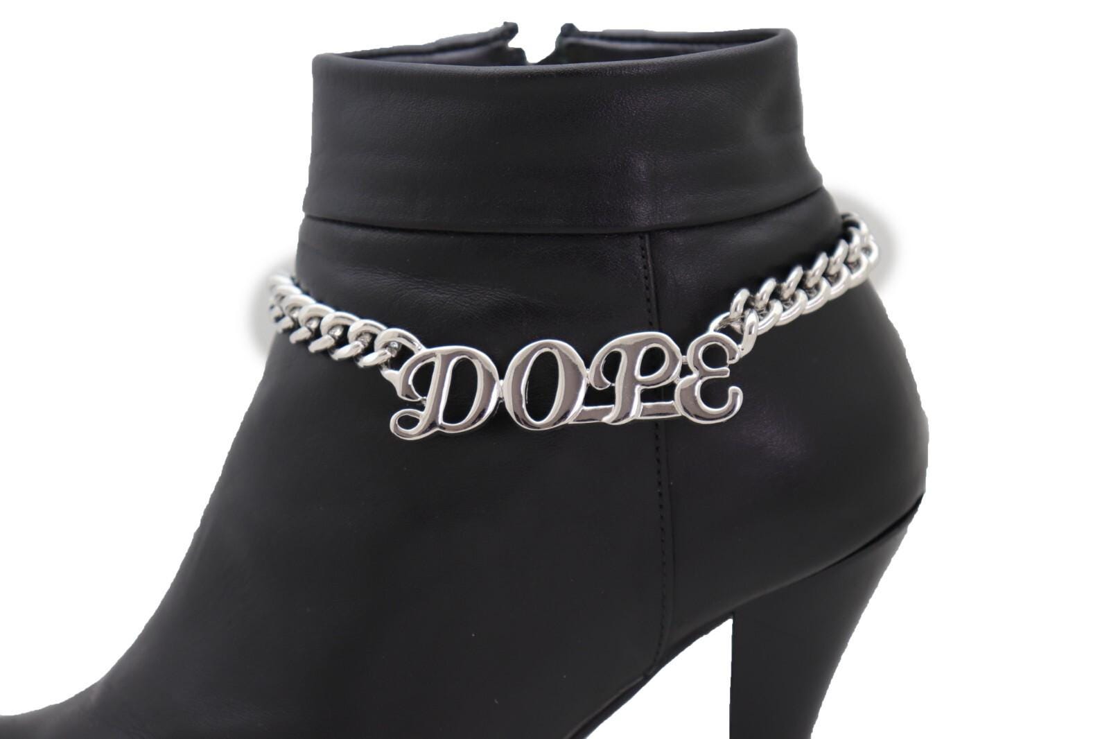 Bold, clean, and easy to style—this handmade silver-tone boot chain bracelet pair adds an instant statement to boots or shoes. Each chain features a letter charm that reads “dope” and an adjustable extender so you can control the drape and fit.