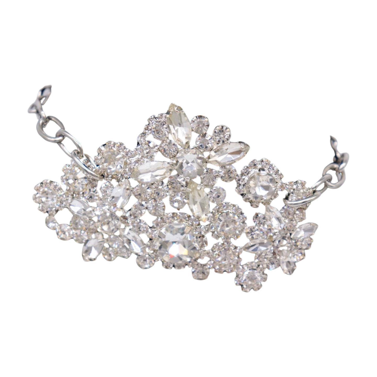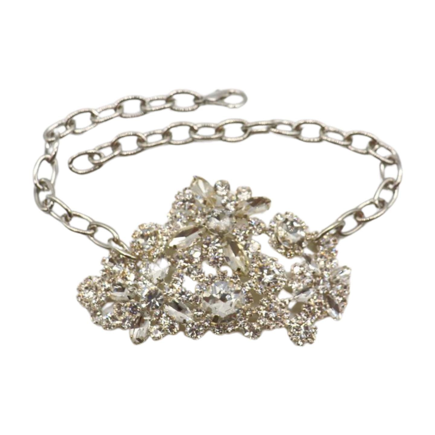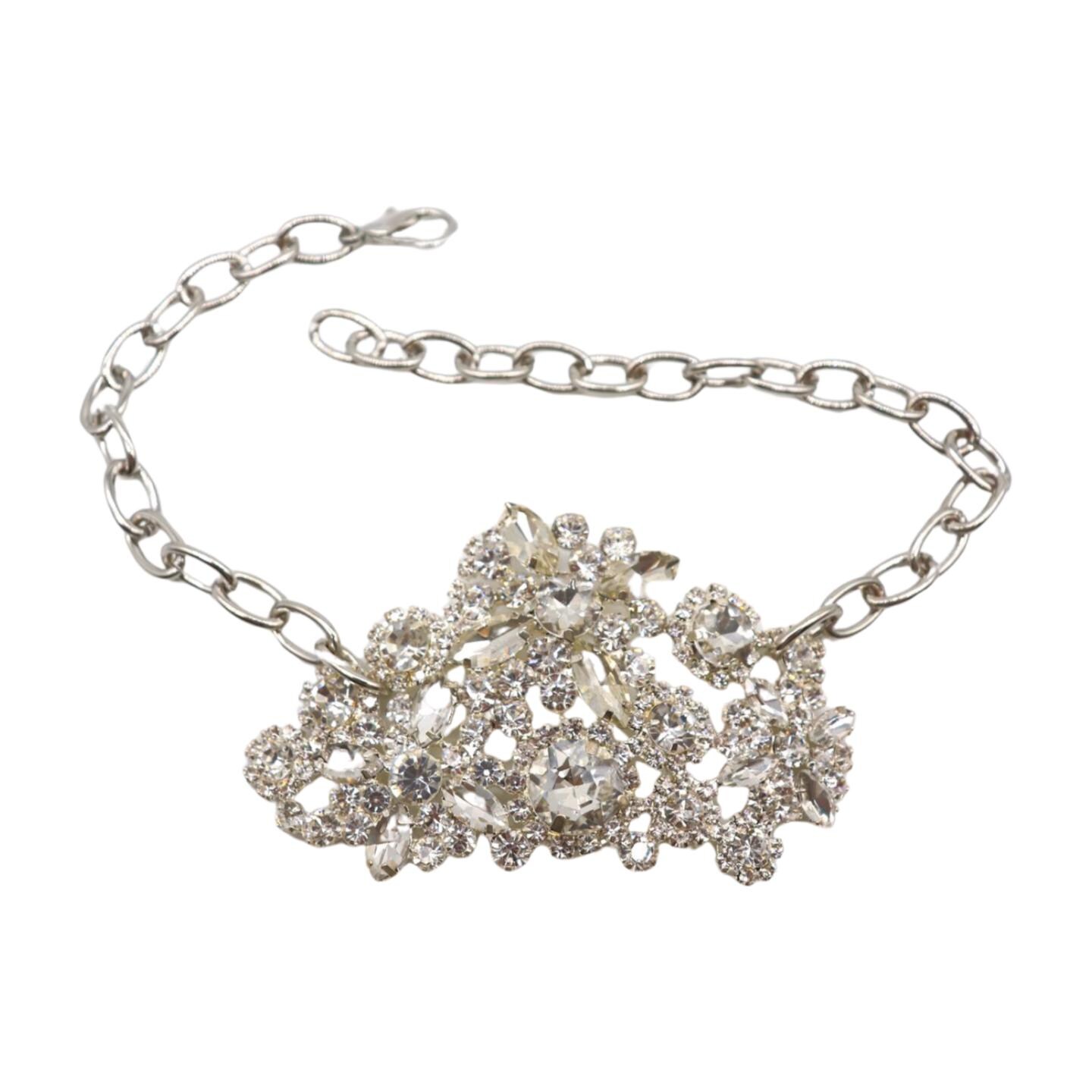 materials: silver-tone metal chain links, rhinestone/crystal accents, metal charm setting