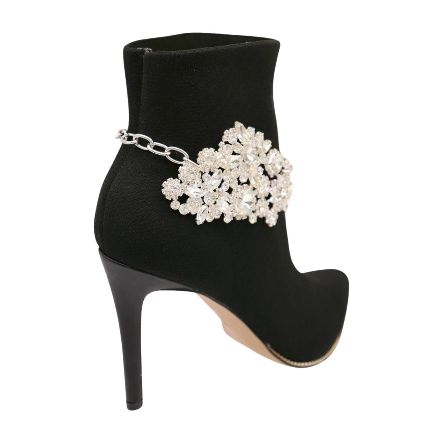 2PCS Women's Silver Metal Boot Chain Bling Crystals Flower, Shoe Anklet Set BC178