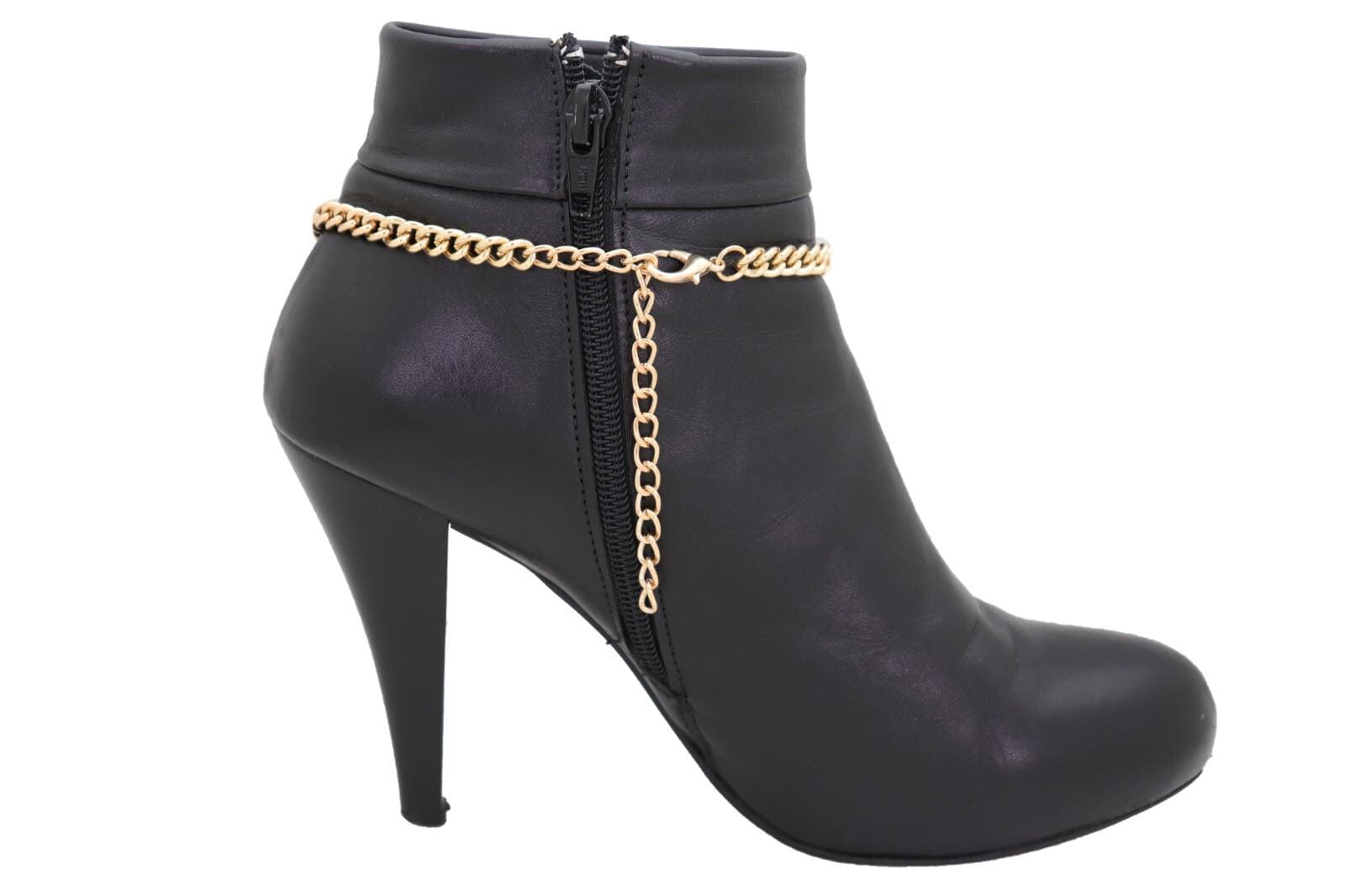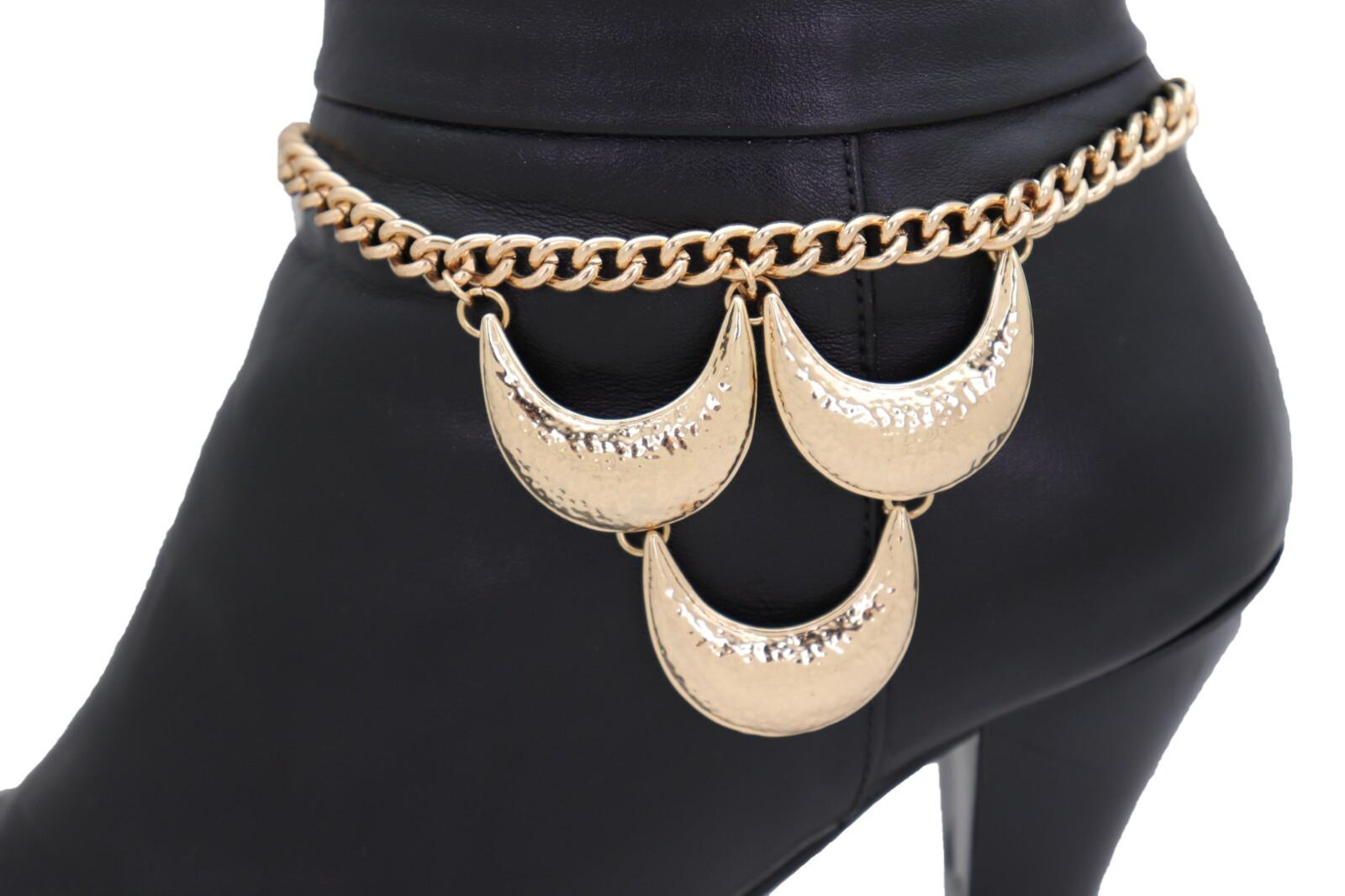 Women's gold moon charm boot chain bracelets pair, western shoe anklet jewelry BC189