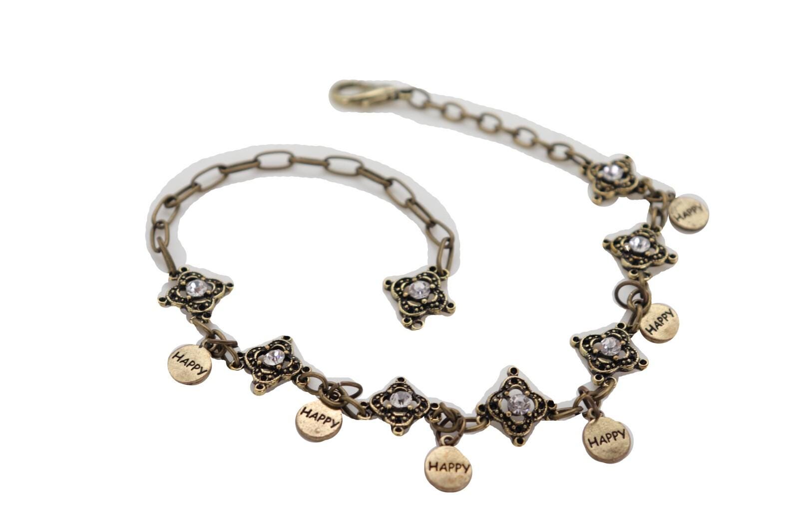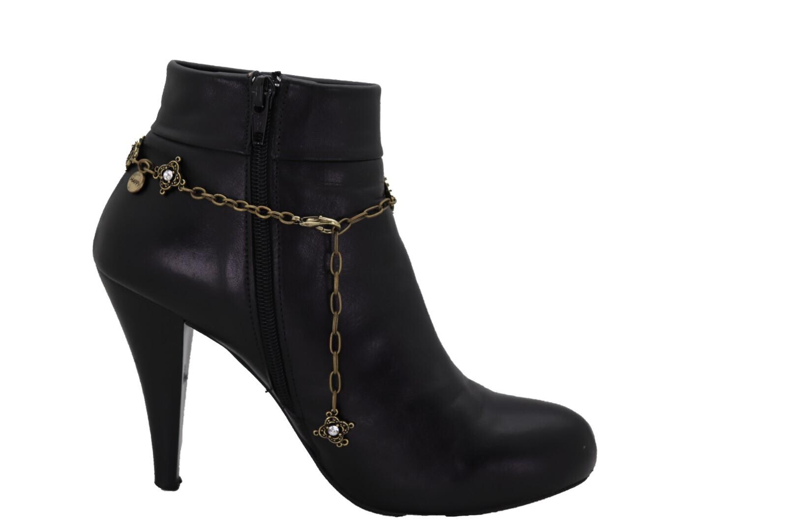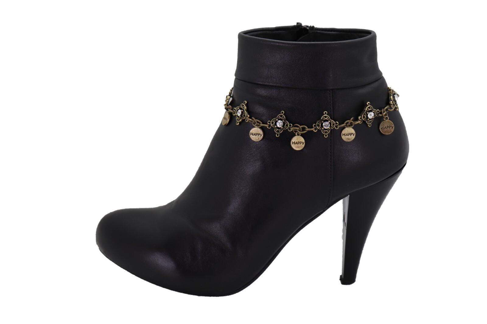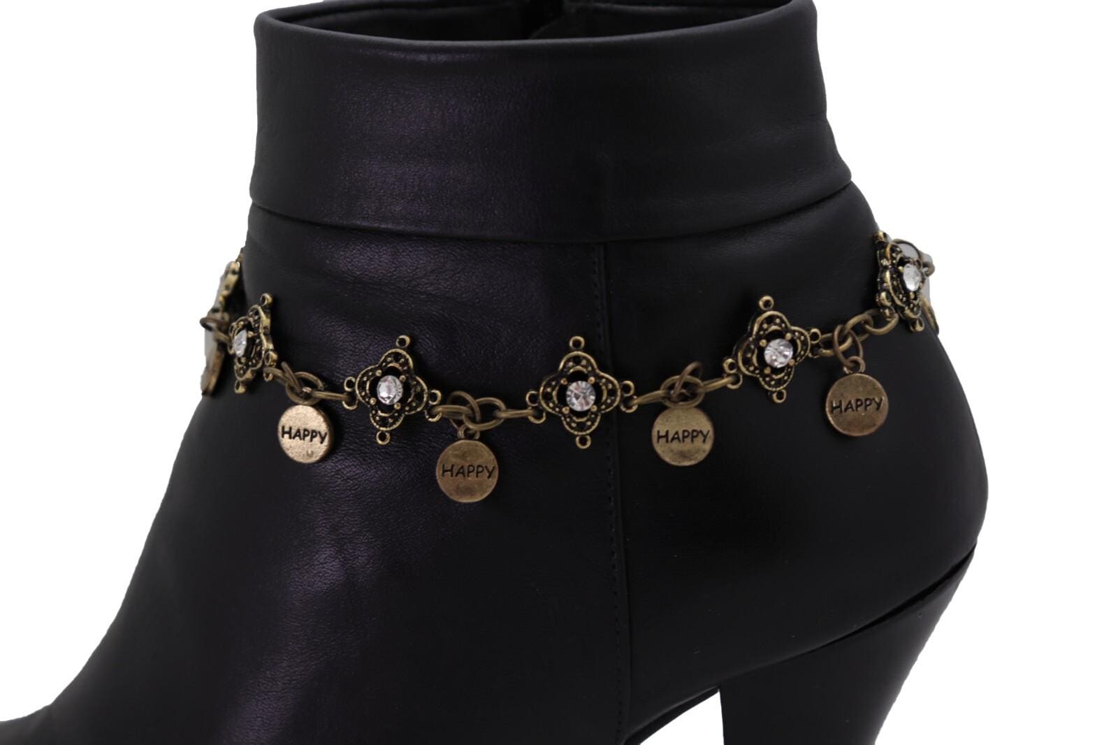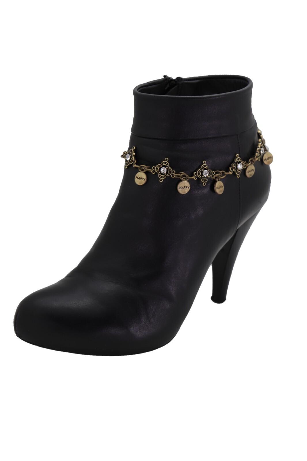 Give Your Boots A Vintage-Style Upgrade With BC191—An Antique Gold Tone Boot Chain Bracelet Pair Featuring Rhinestone Stations And Dangling “Happy” Coin Charms That Move As You Walk. This Set Is Sold As A Pair (2 Pcs), Designed So You Can Wear One On Each Boot Side For A Balanced, Styled Look.