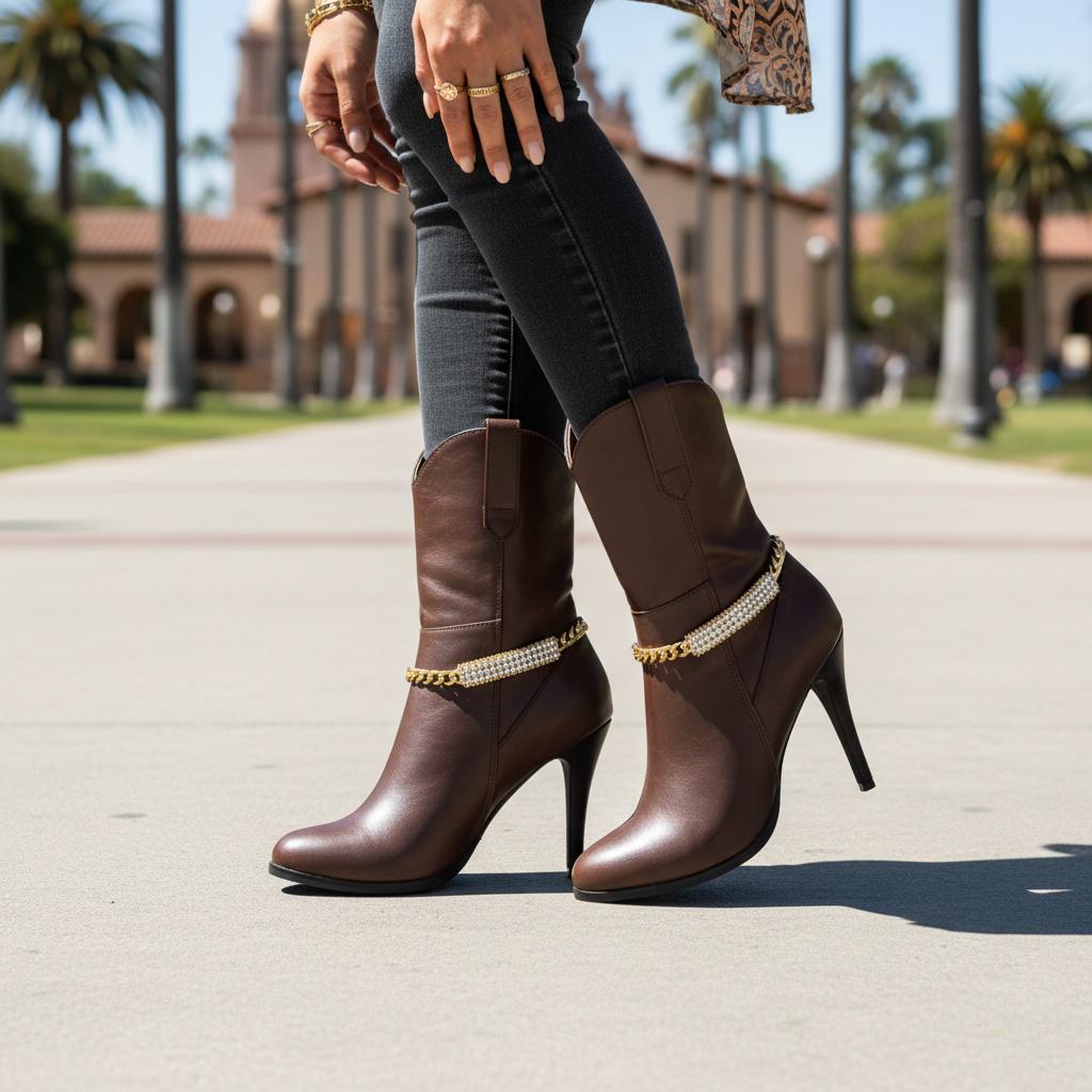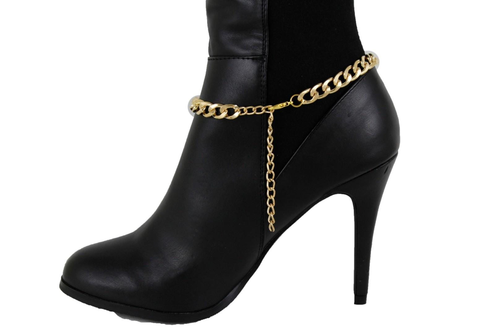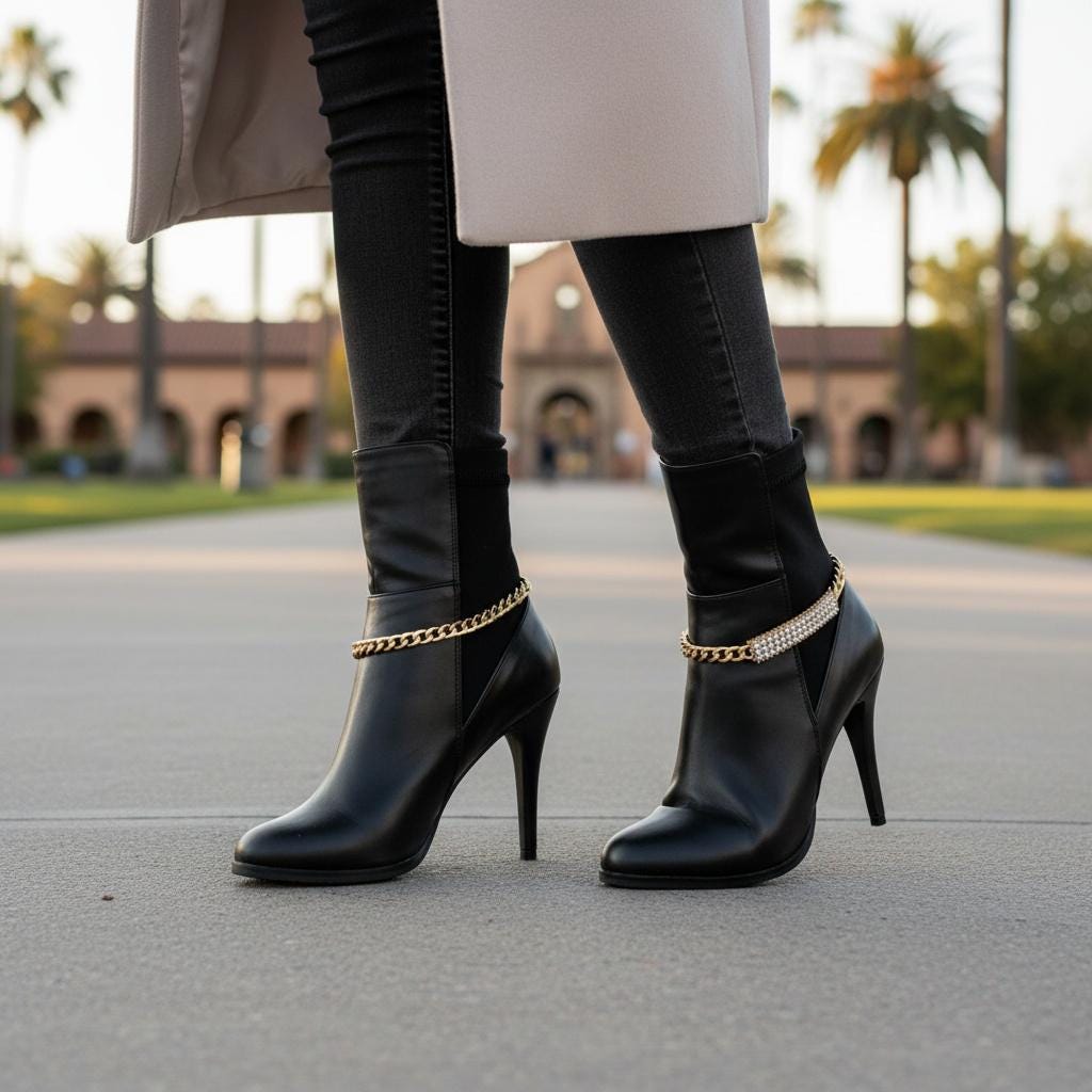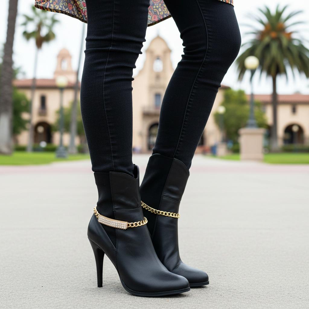 This listing is sold as a pair (2PCS), so both boots get the full styled finish. Each anklet adjusts from 11" to 15" using a lobster clasp and extension chain. For best comfort and longevity, wear with a slight drape around the boot instead of a tight fit—drape helps reduce tension on links.
