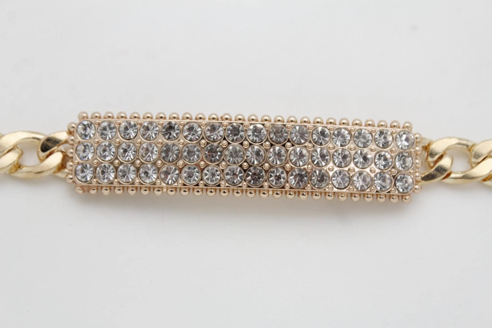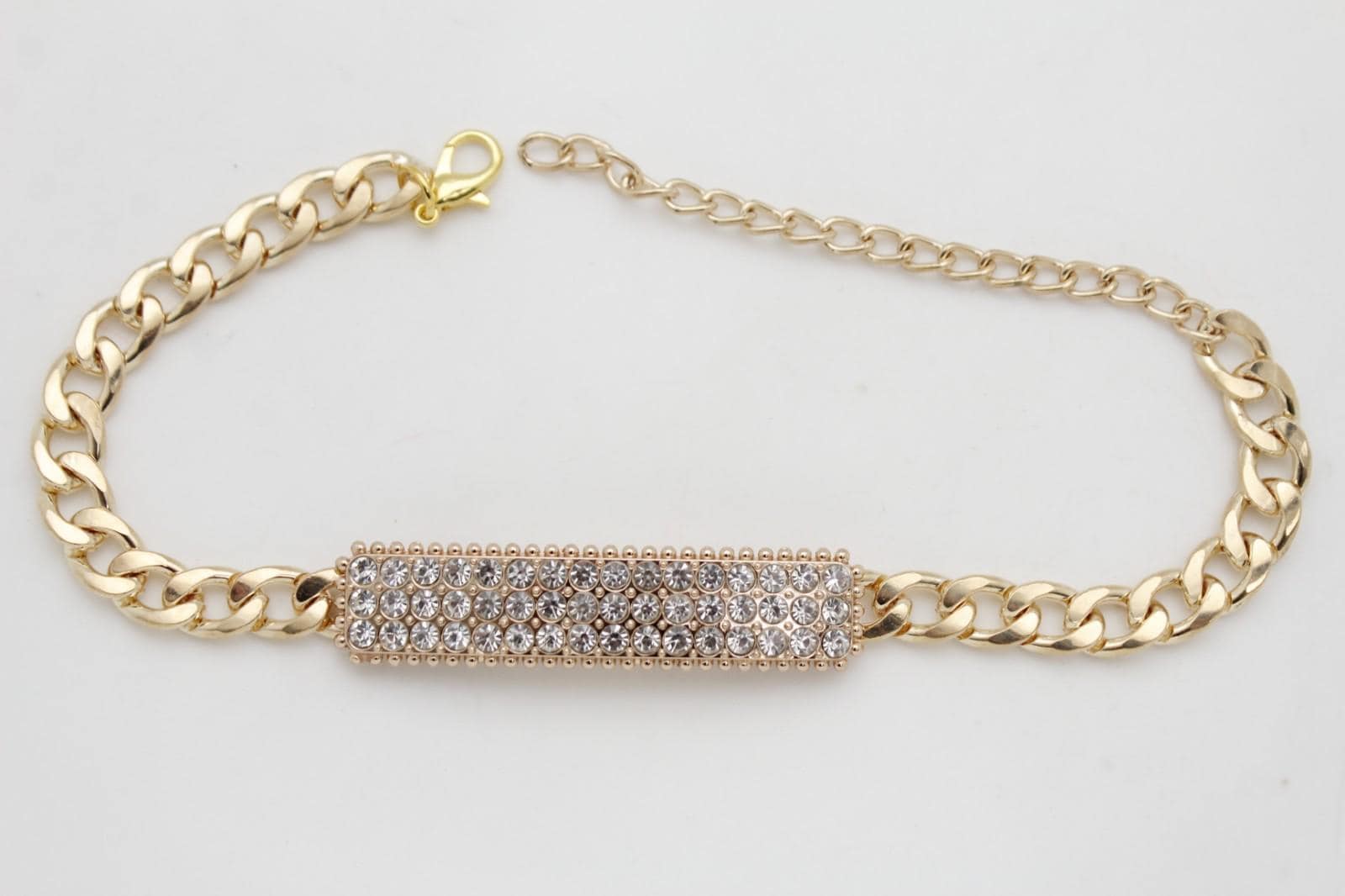 Gold boot chain anklet pair with rhinestone bar plate, handmade in USA, (2pcs) BC200