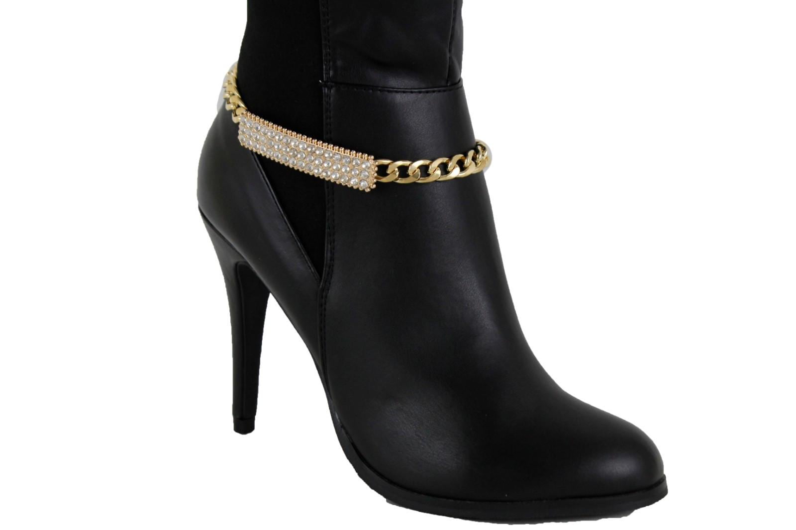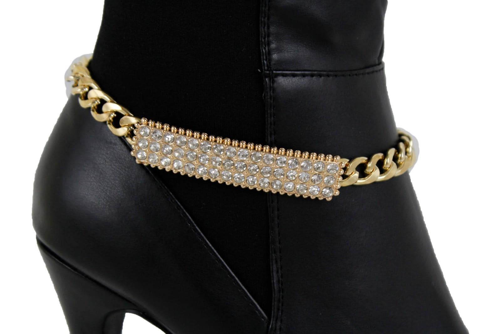 gold boot chain anklet pair, rhinestone bar boot jewelry, adjustable boot anklet, western glam shoe jewelry, handmade boot chain usa