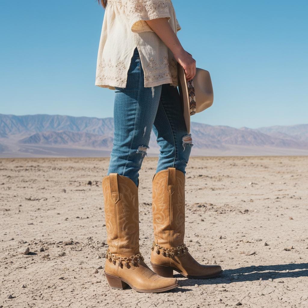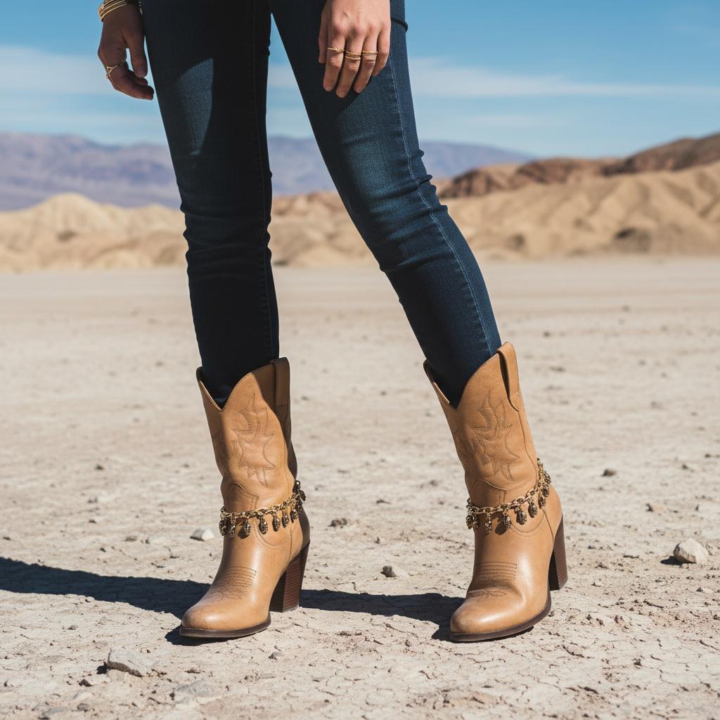 Looks great with cowboy boots, ankle boots, and heeled booties. Pairs well with denim, black-on-black outfits, leather jackets, fringe, and western-inspired looks.