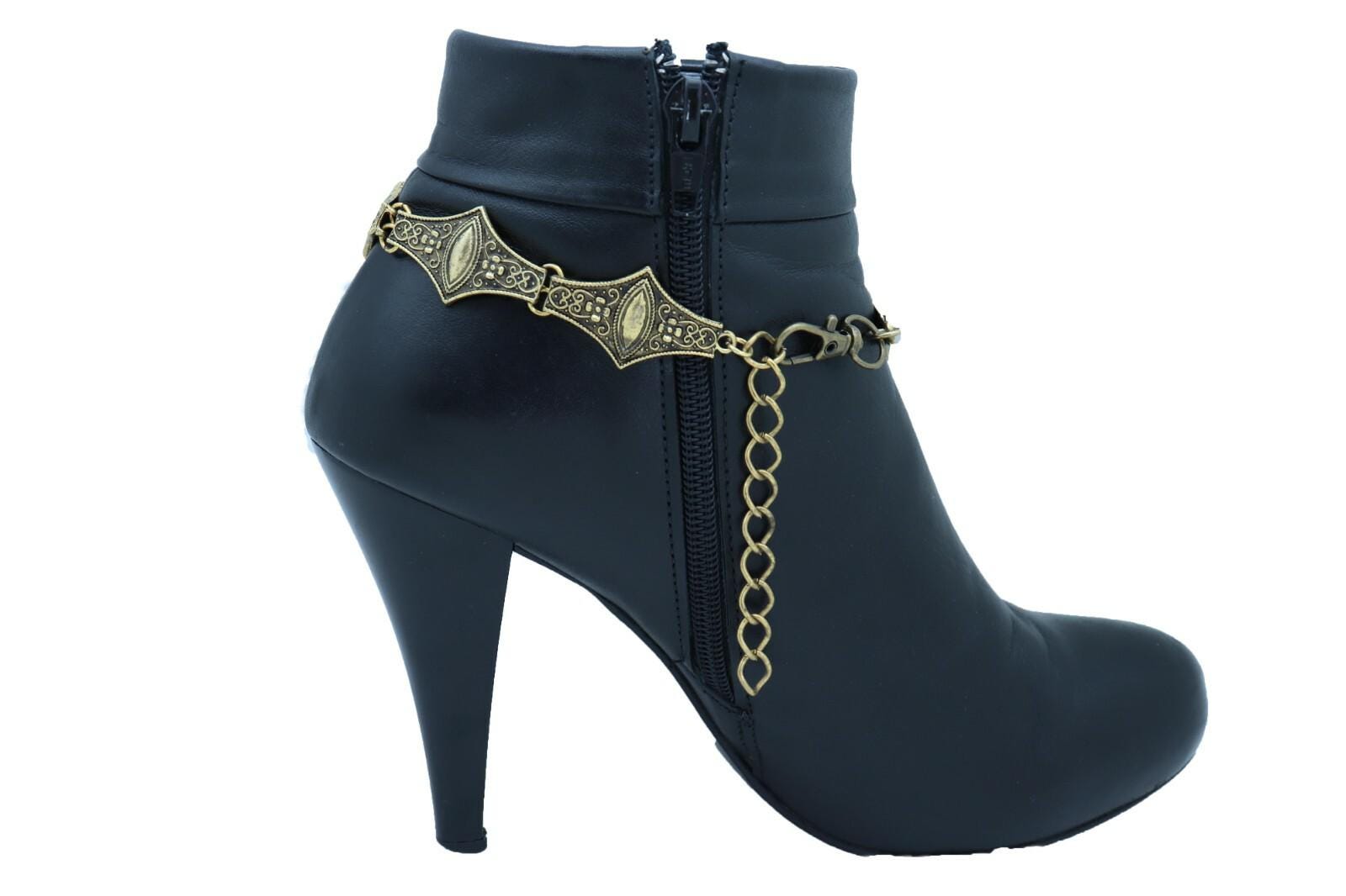 Women antique gold boot chain bracelet pair eye shoe anklet handmade in USA BC209
