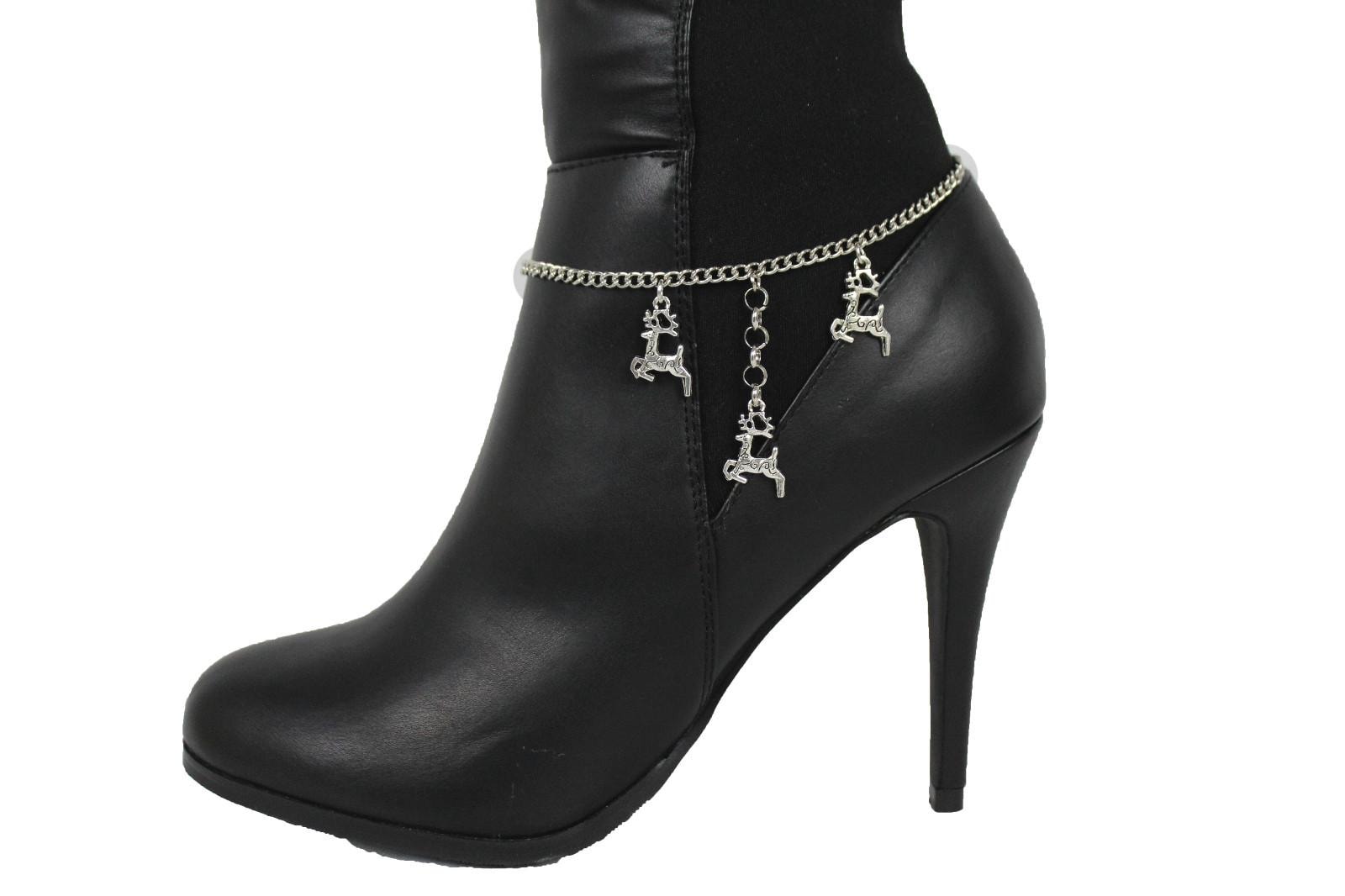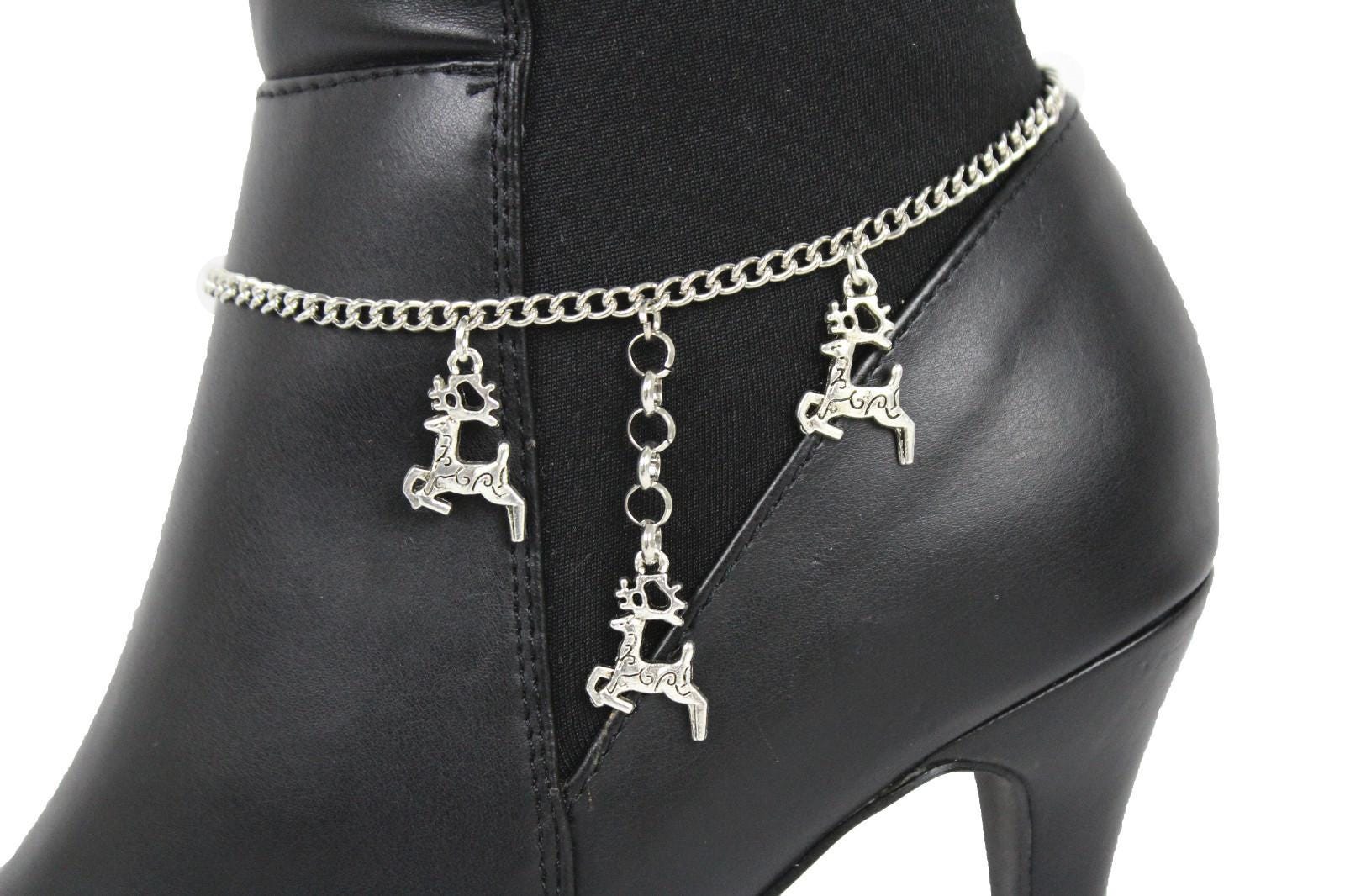 2PCS Women Silver Metal Boot Chain Reindeer Shoe Charm Anklet Holidays Christmas Jewelry BC323