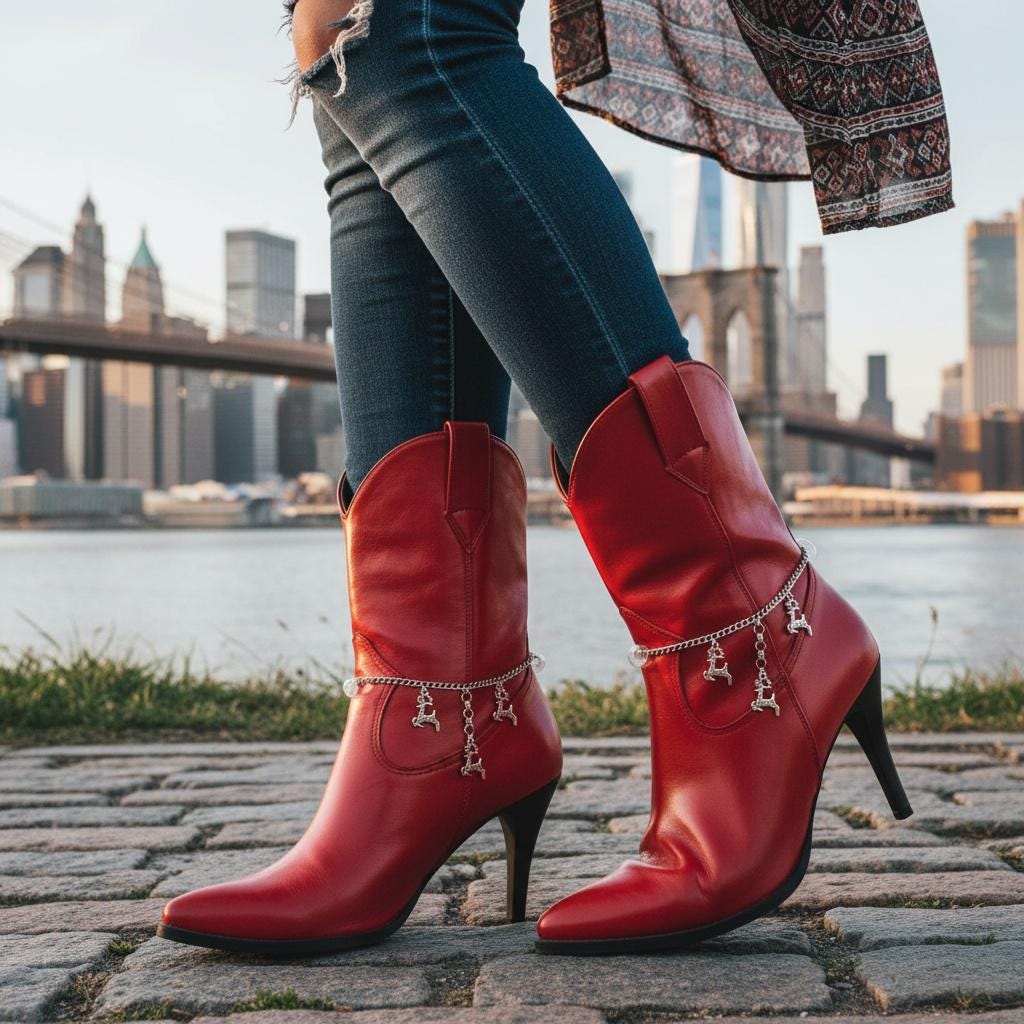 Meet your boots’ new favorite sidekick: a silver-tone boot chain anklet set with three mini reindeer dangles on each side. This listing is for one matching pair (2PCS)—one anklet for each boot—so your look stays balanced and styled from every angle.