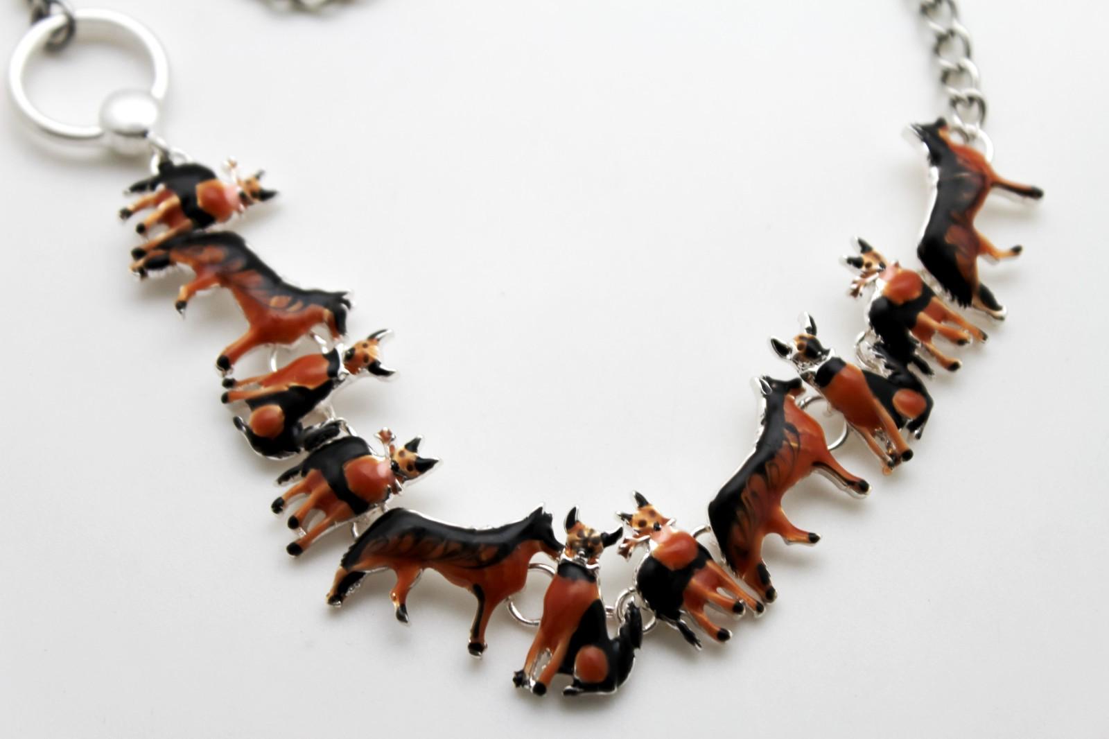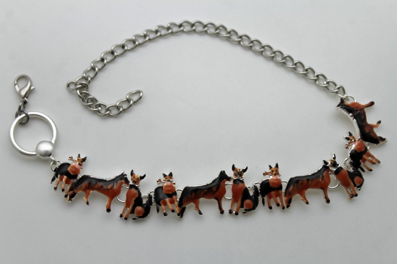 color: silver tone chain + black/brown enamel dog charms