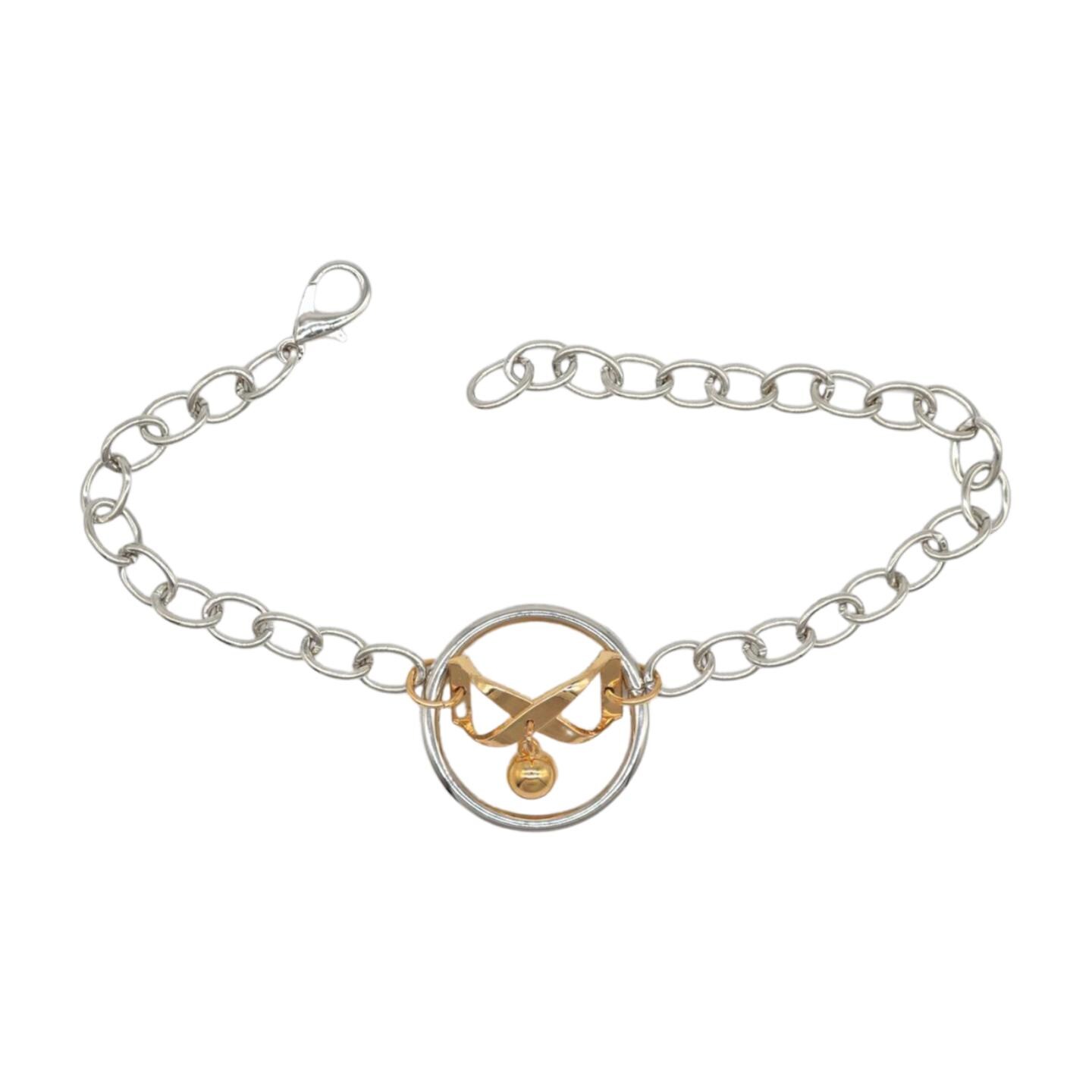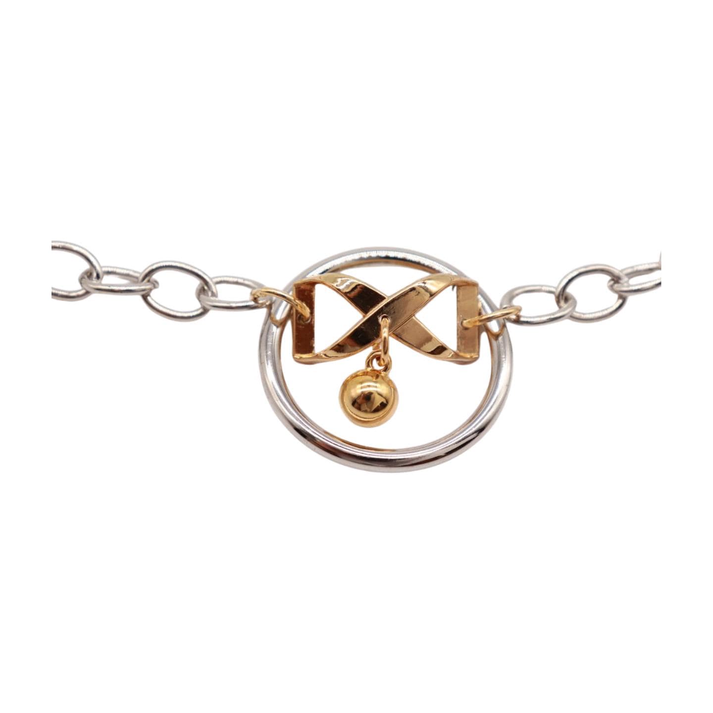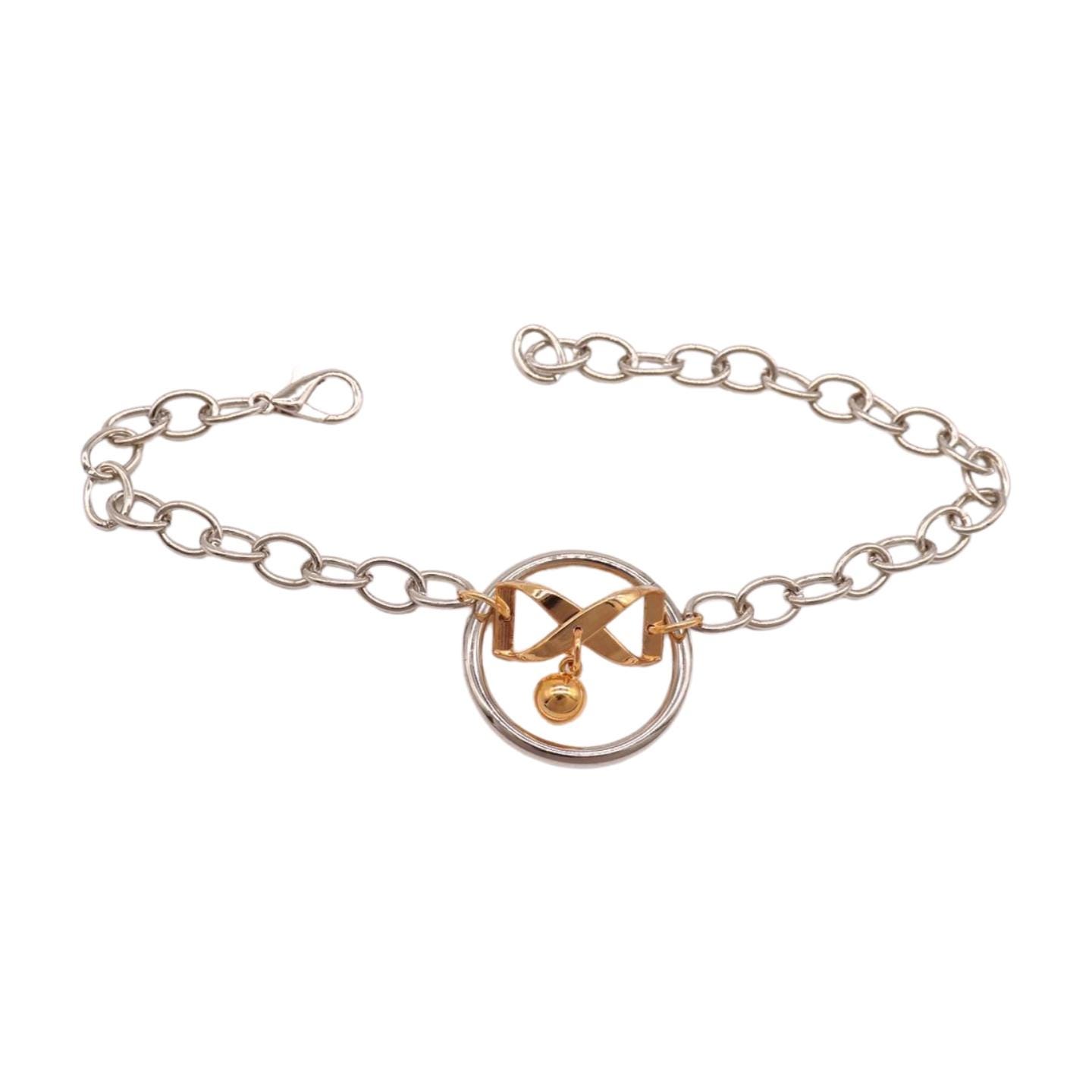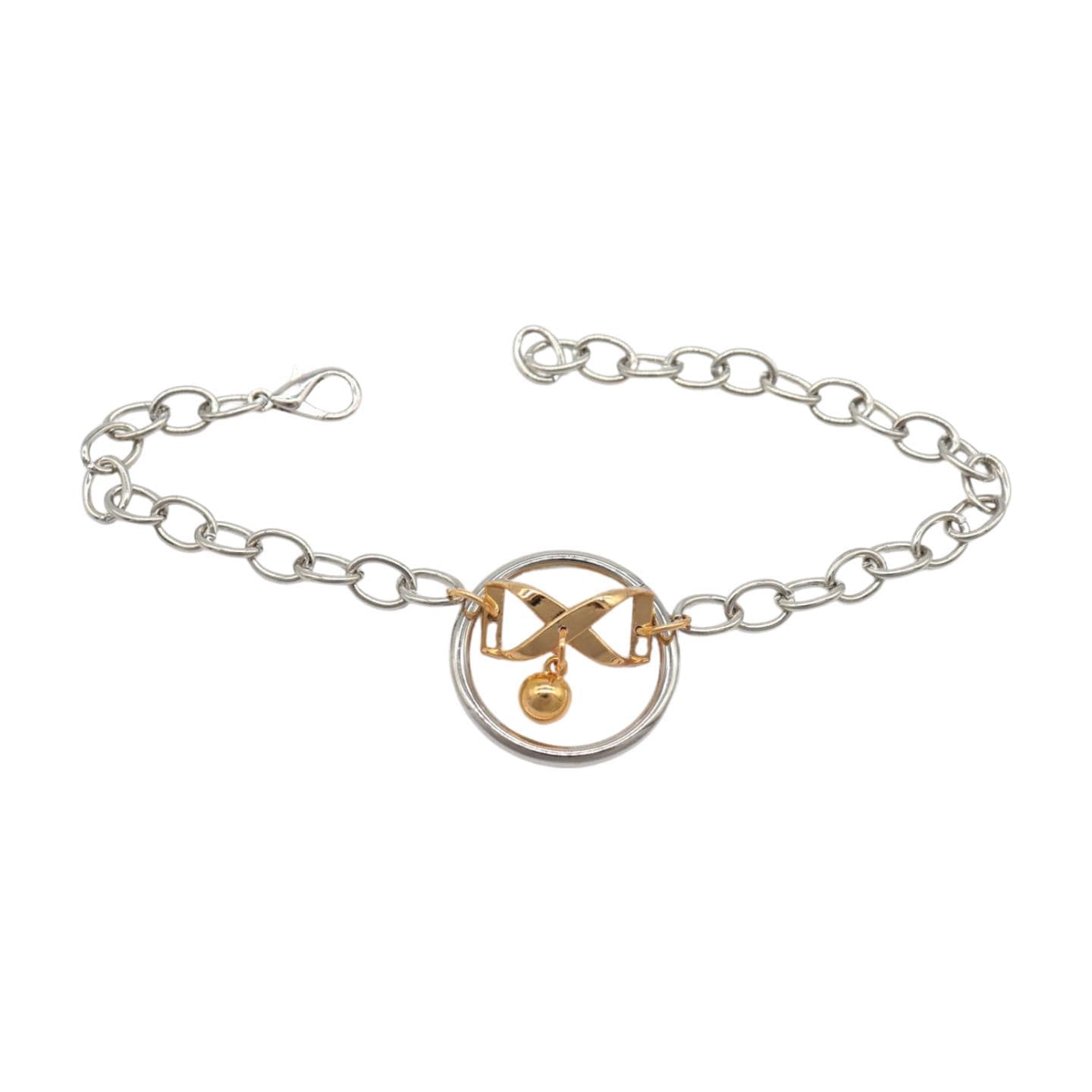 Meet your new favorite “instant outfit upgrade.” This two-tone boot chain bracelet set is sold as a pair (2pcs) so you can style one on each boot for a balanced, photo-ready look. The design features a silver-color chain with a standout gold infinity bow charm, a tiny hanging ball, and a polished circle centerpiece that catches the light when you walk.