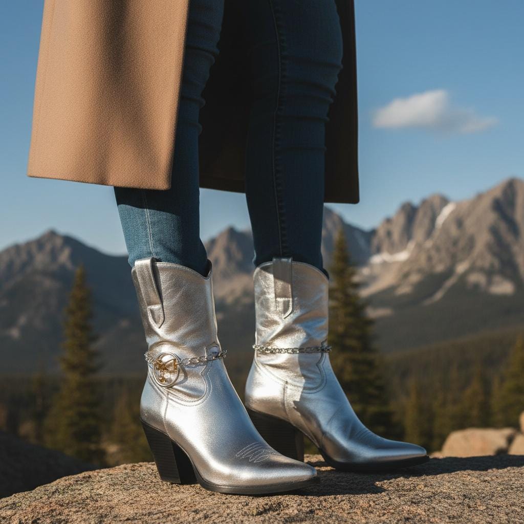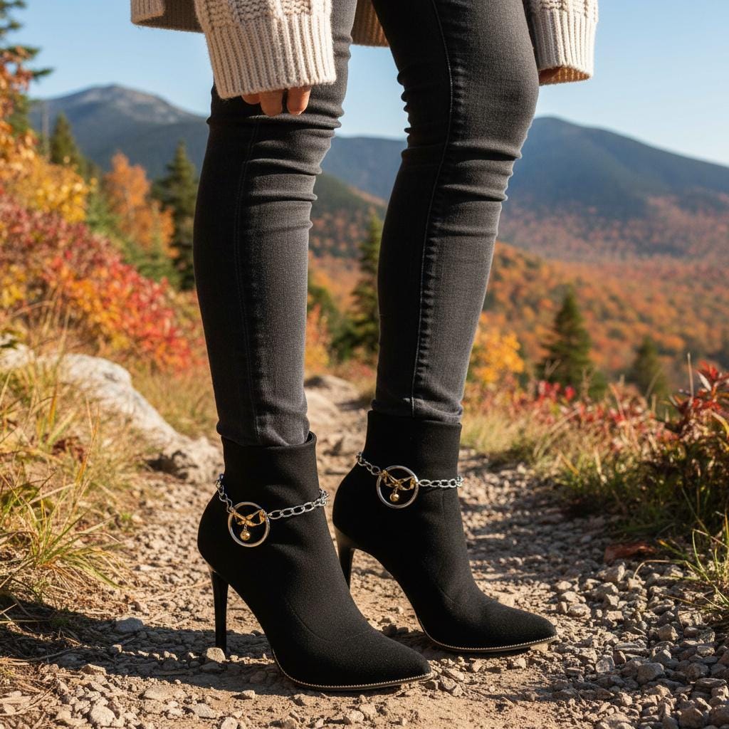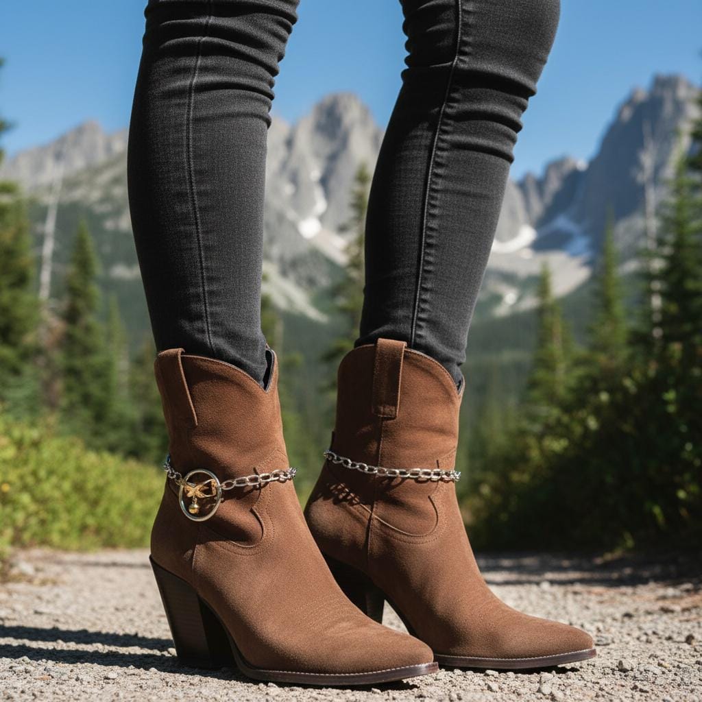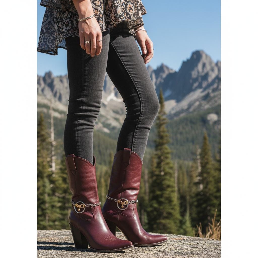Meet your new favorite “instant outfit upgrade.” This two-tone boot chain bracelet set is sold as a pair (2pcs) so you can style one on each boot for a balanced, photo-ready look. The design features a silver-color chain with a standout gold infinity bow charm, a tiny hanging ball, and a polished circle centerpiece that catches the light when you walk.