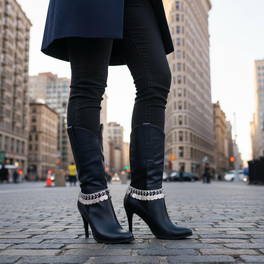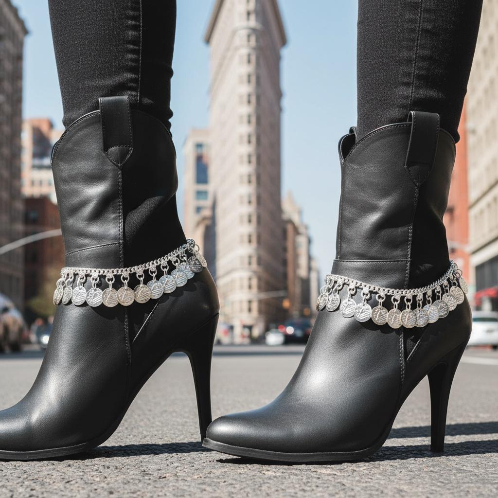 Meet the easiest way to make your boots look like you planned the whole outfit. These silver-tone boot chain bracelets feature Moroccan-inspired coin charms that add movement, shine, and that “where did you get those?” energy.