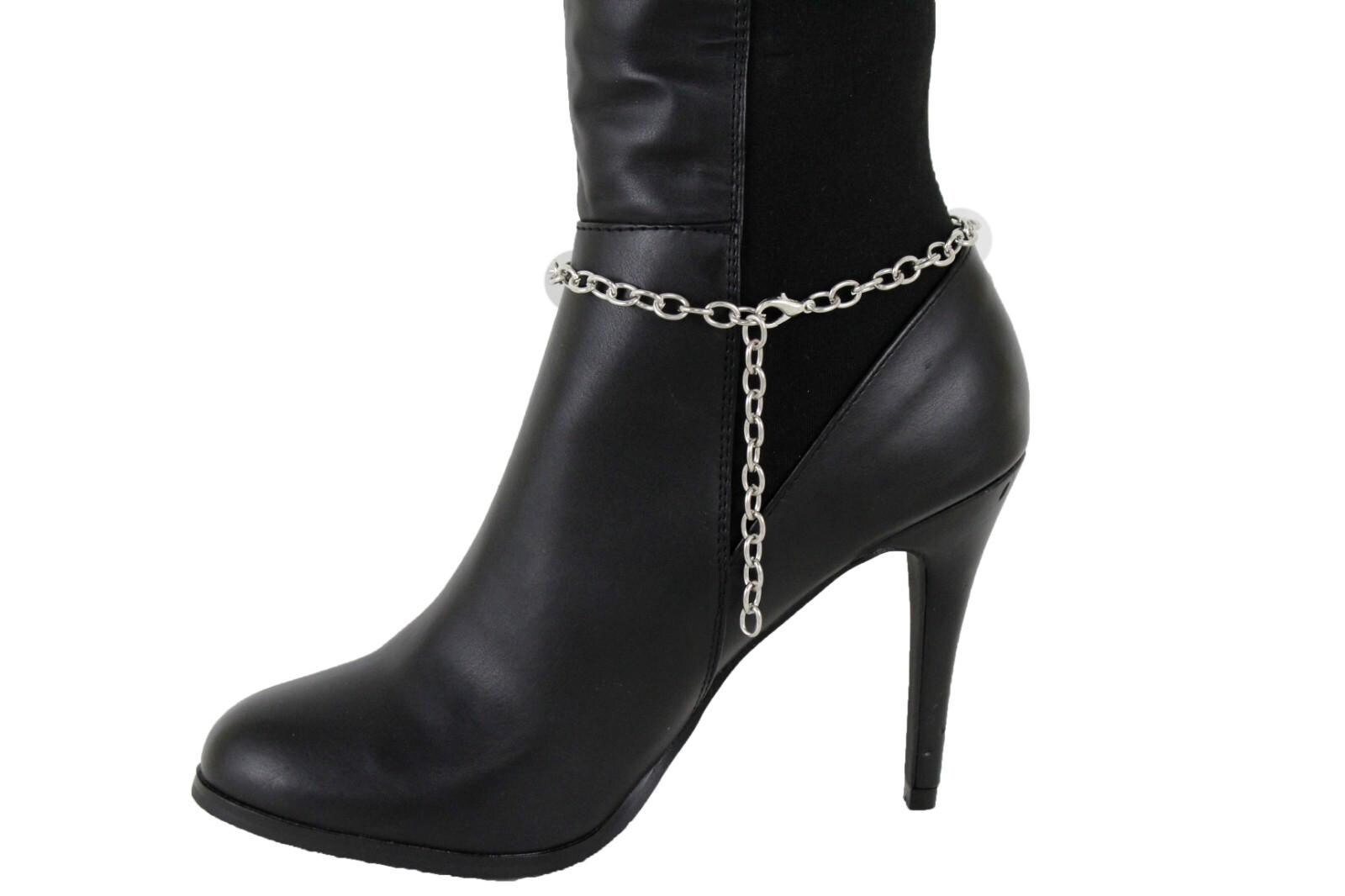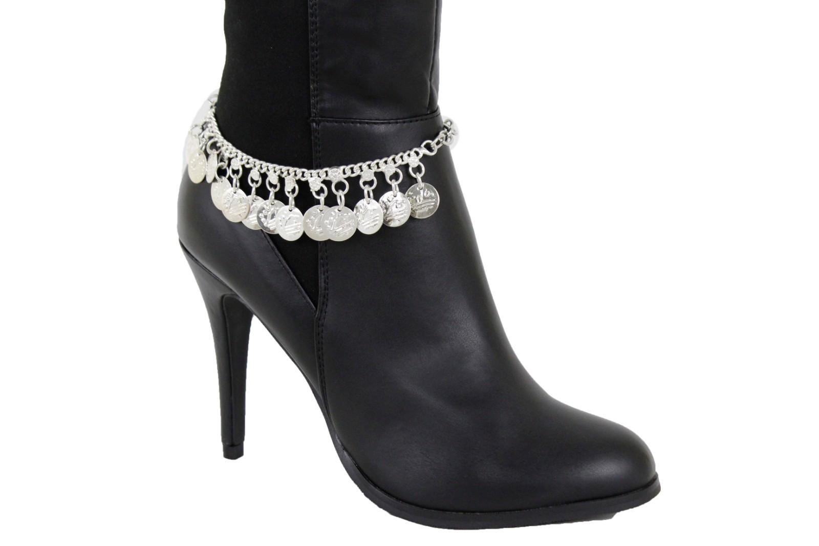 Silver Moroccan coin boot chain bracelets pair boot anklets shoe jewelry, handmade USA, BC261