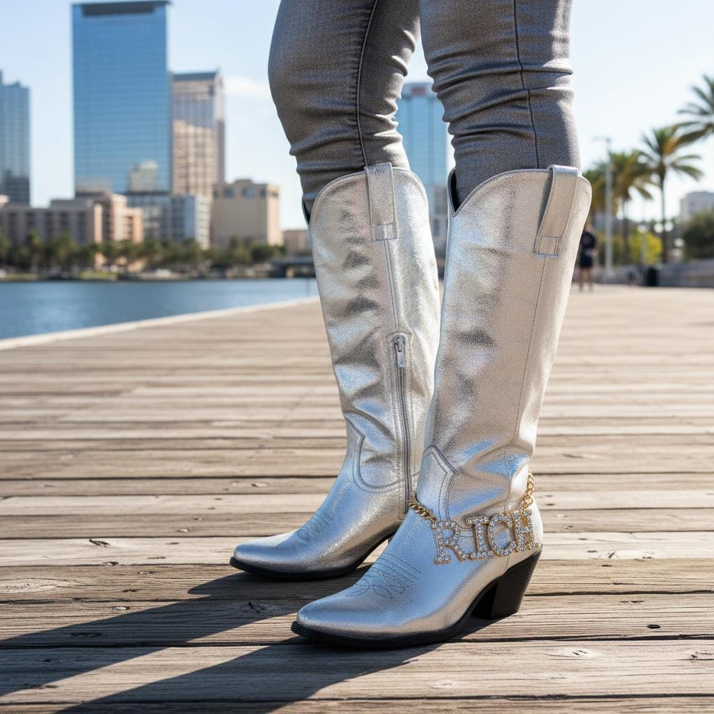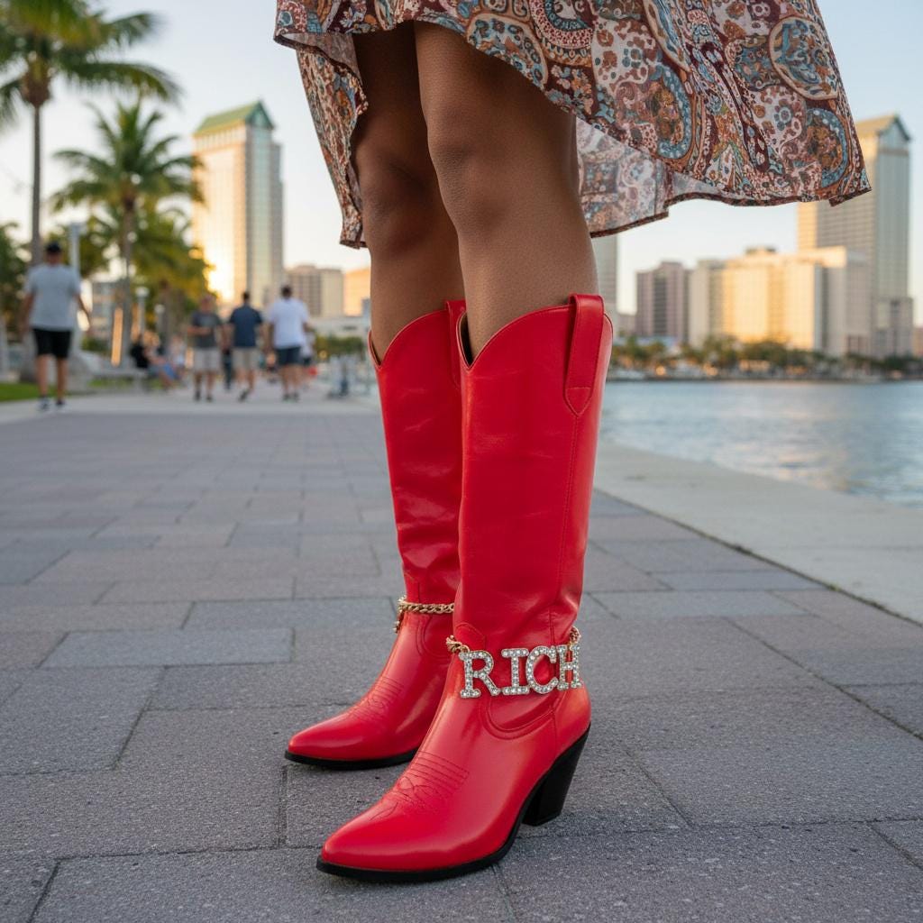 The best part: it’s a fast styling trick. Boots that feel “too simple” suddenly look like you planned the whole outfit. Wear it for nights out, concerts, festivals, photoshoots, line dancing, parties, and those weekends when your outfit needs one extra detail that actually shows.