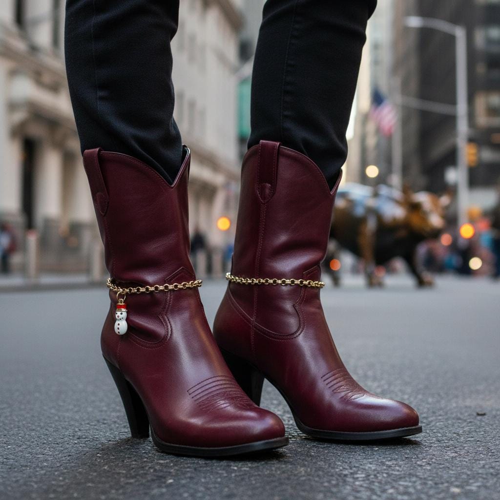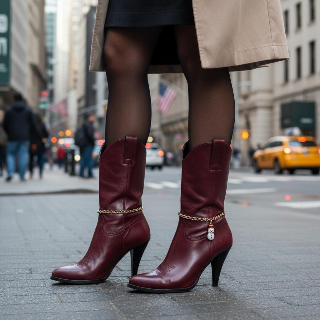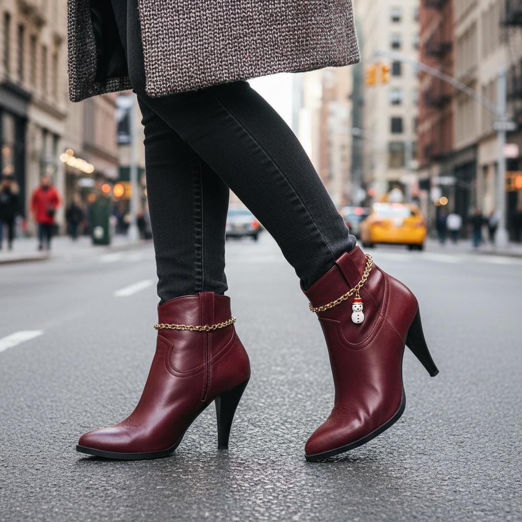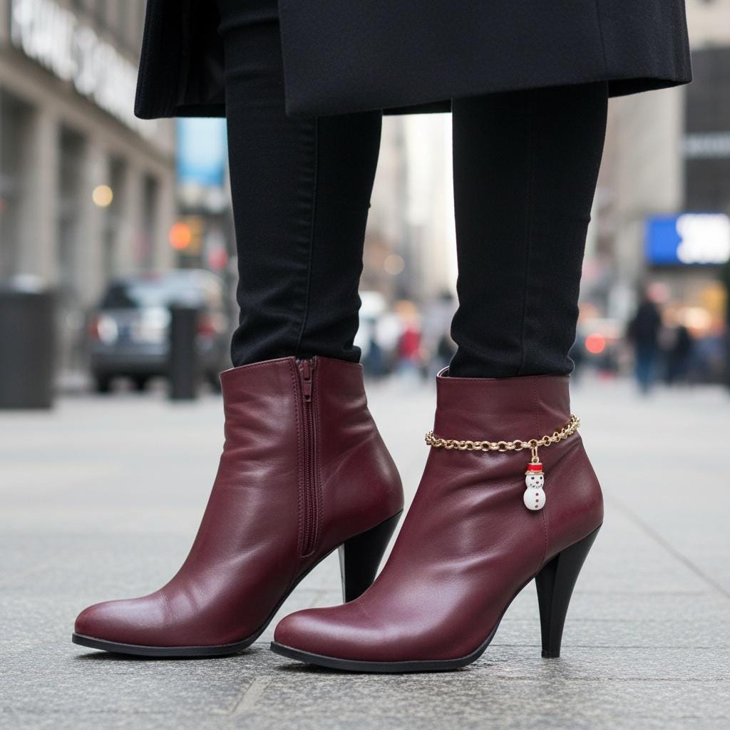This design is a fun choice for anyone who loves holiday fashion, winter accessories, boot jewelry, country-inspired outfits, or giftable seasonal pieces with personality.
