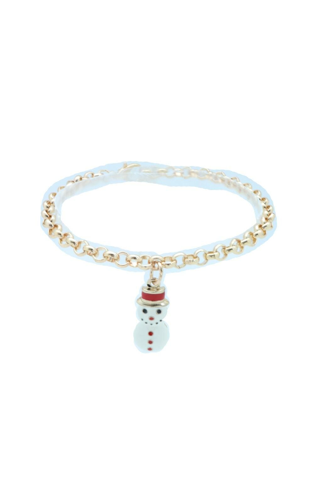 Women 2PCS White Snowman Charm Boot Chains – Gold Christmas Jewelry, Handmade USA BC276