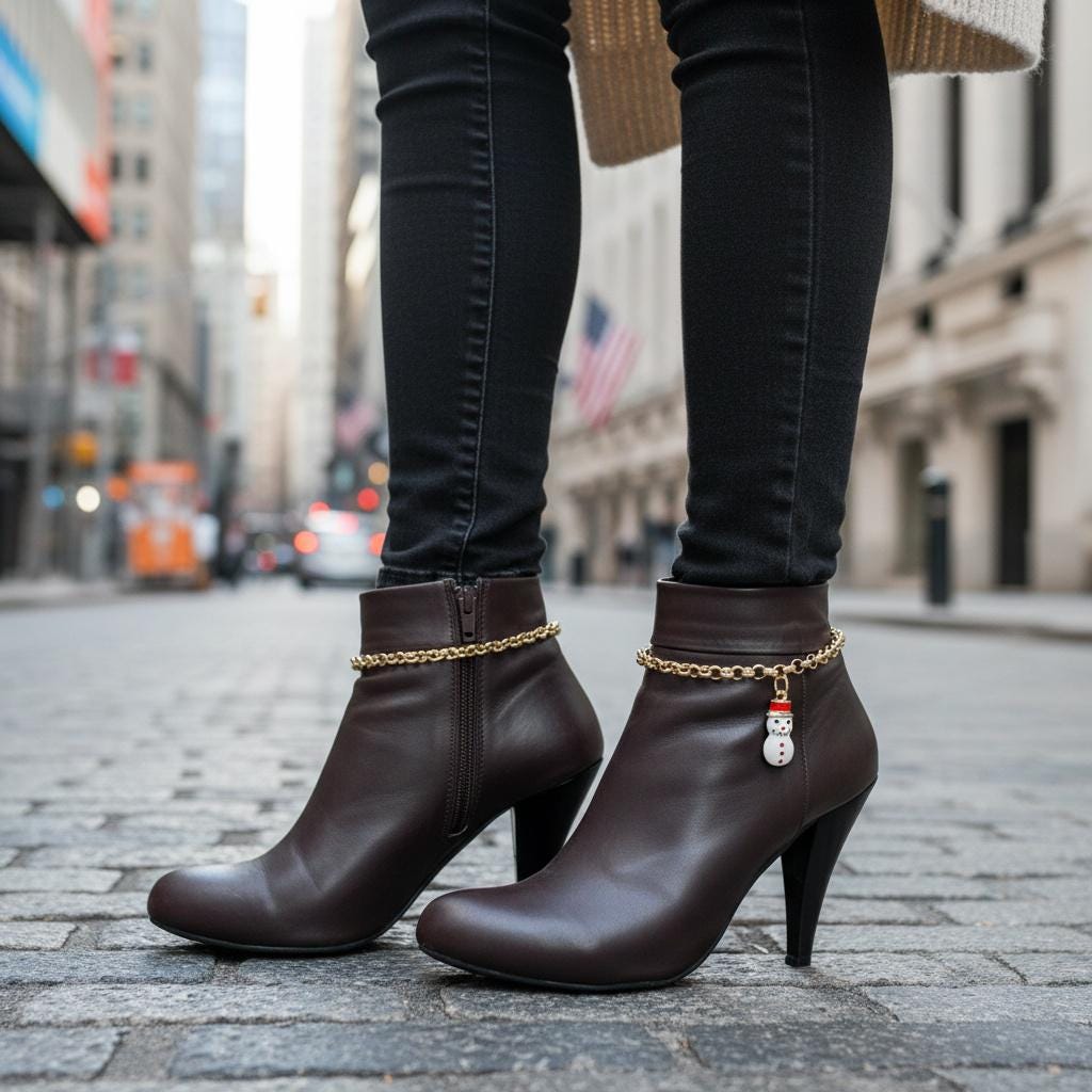 women gold boot chain bracelet pair snowman charm holiday boot jewelry handmade USA Christmas winter shoe anklet accessory