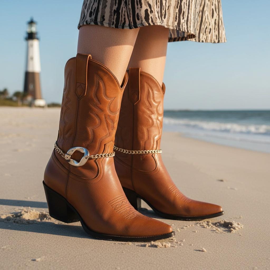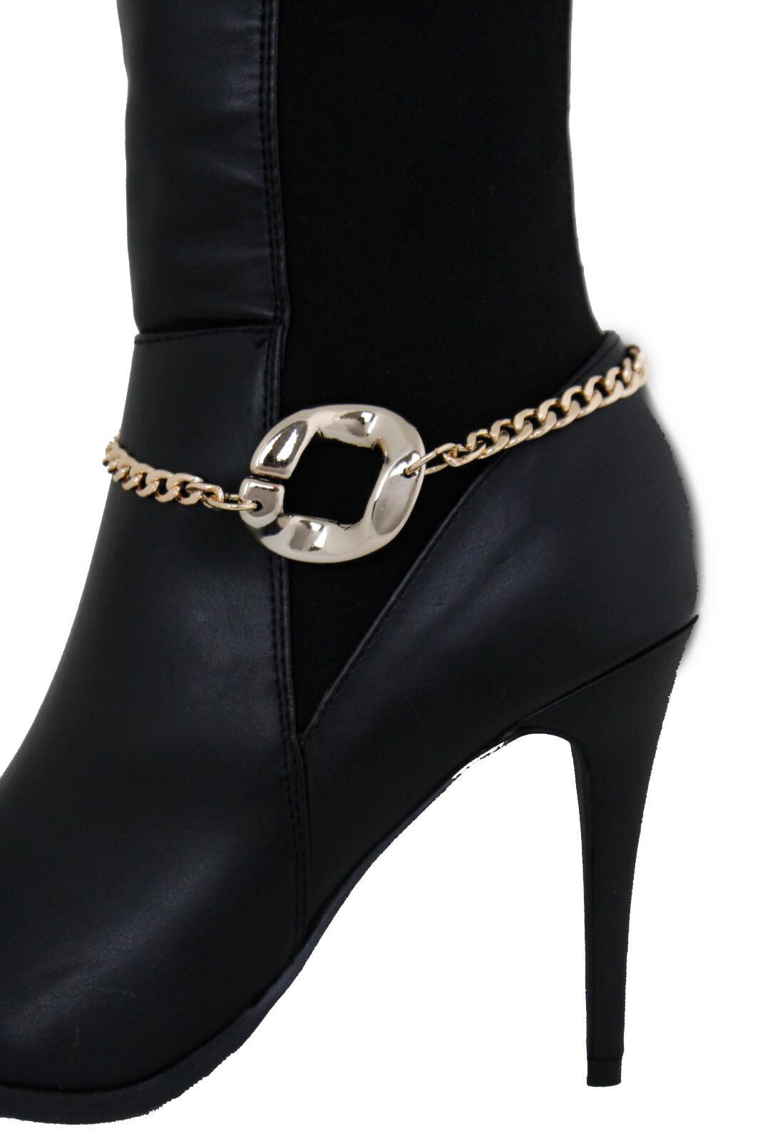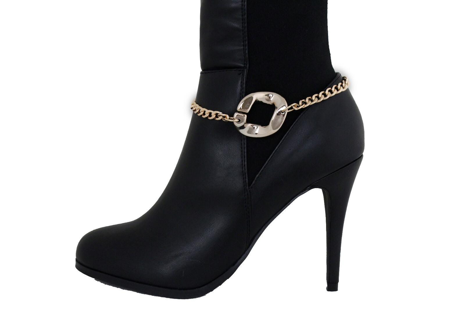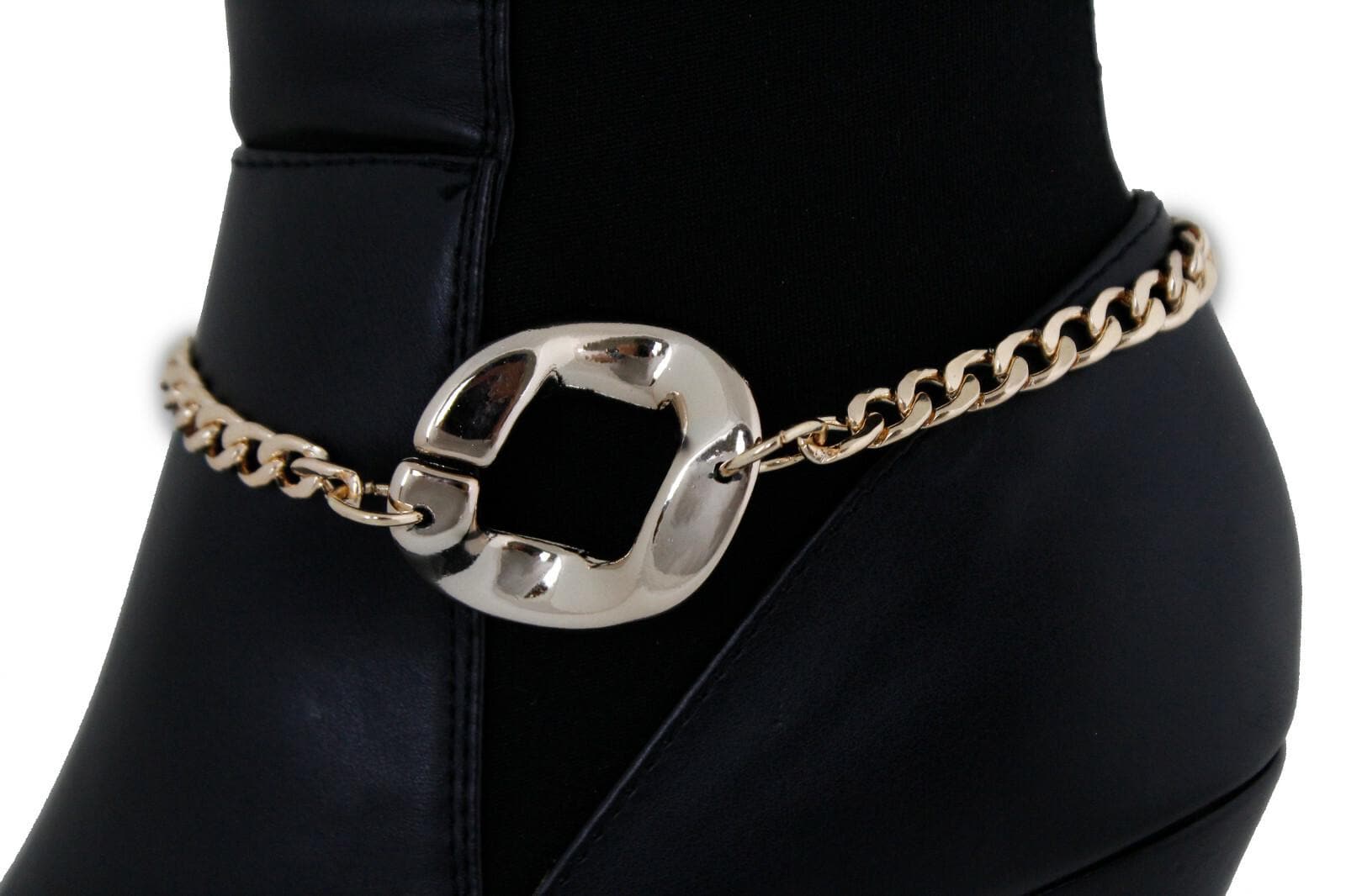 The gold tone chain creates a strong decorative line around the ankle, while the oversized gold link adds shape, shine, and a more fashion-forward finish. These look beautiful with cowboy boots, ankle boots, heeled boots, dress boots, dark boots, neutral boots, and outfits that need one great gold detail to tie everything together.