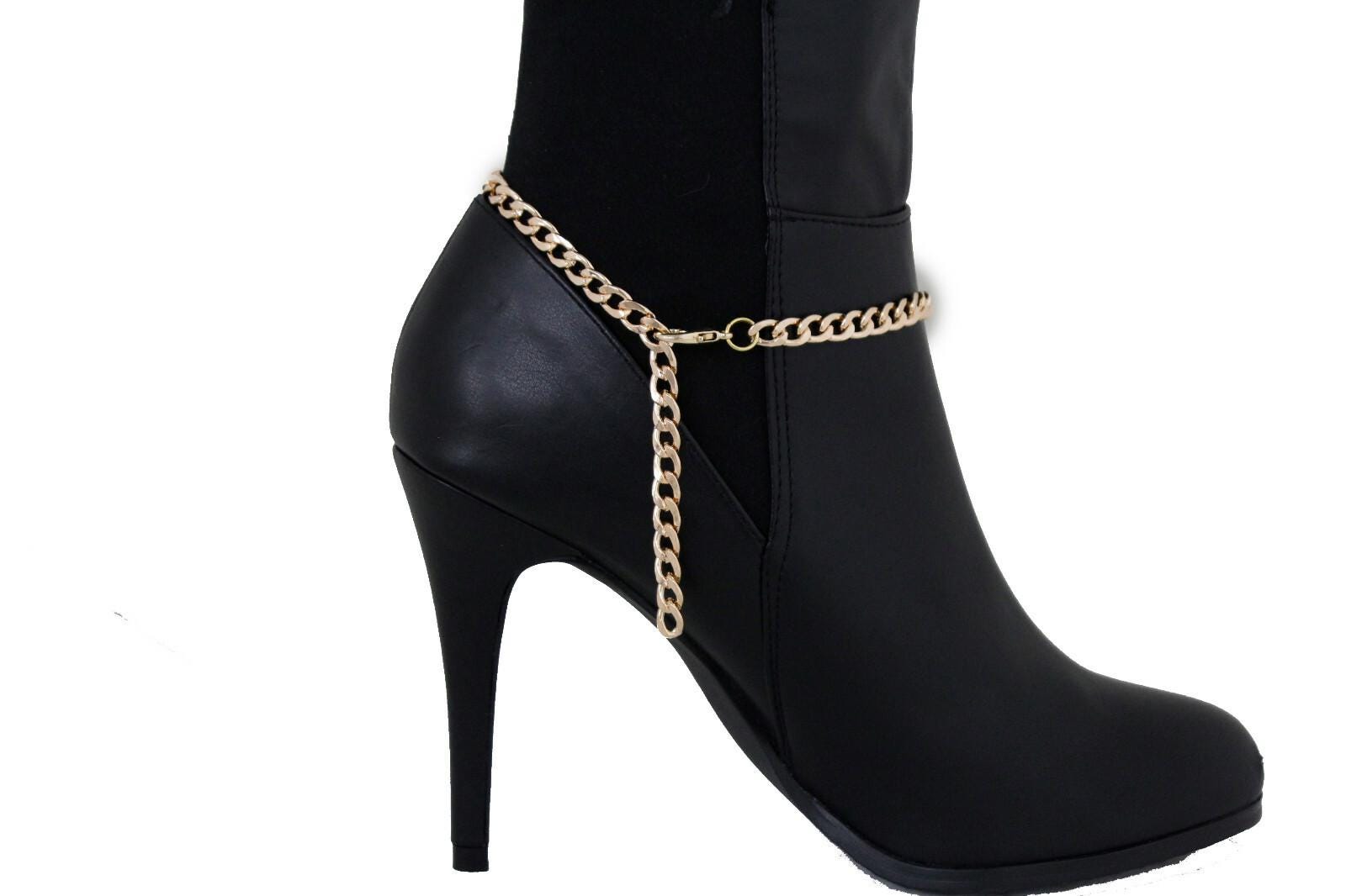 Add a bold gold finish to your favorite boots with this handmade pair of women’s boot chain bracelets featuring a big link centerpiece. This design wraps stylishly around your boots and instantly gives them a more polished, eye-catching look without changing the boots themselves.
