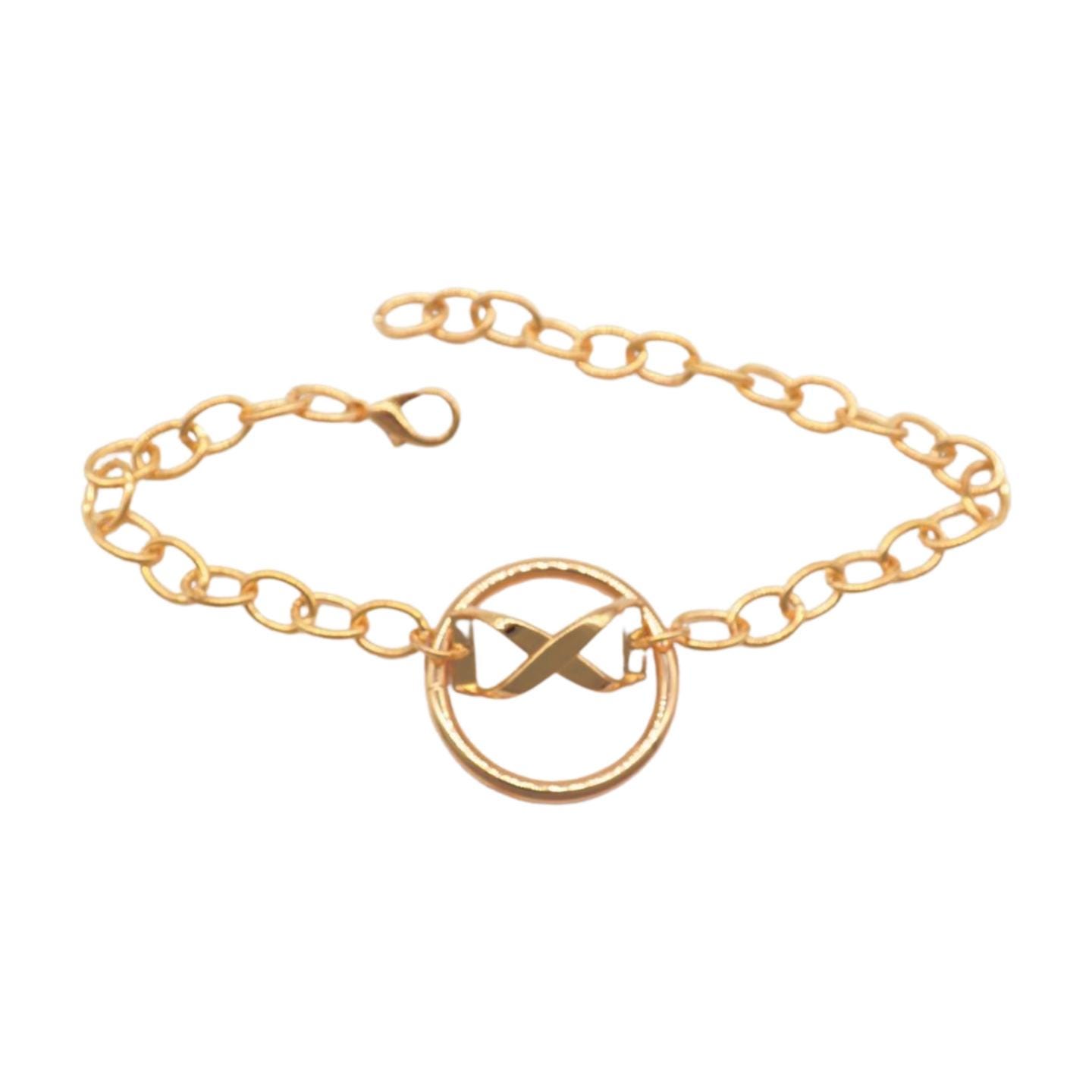 Handmade gold-tone boot chain bracelet pair with infinity-inspired charm, adjustable fit, and easy western-to-modern styling