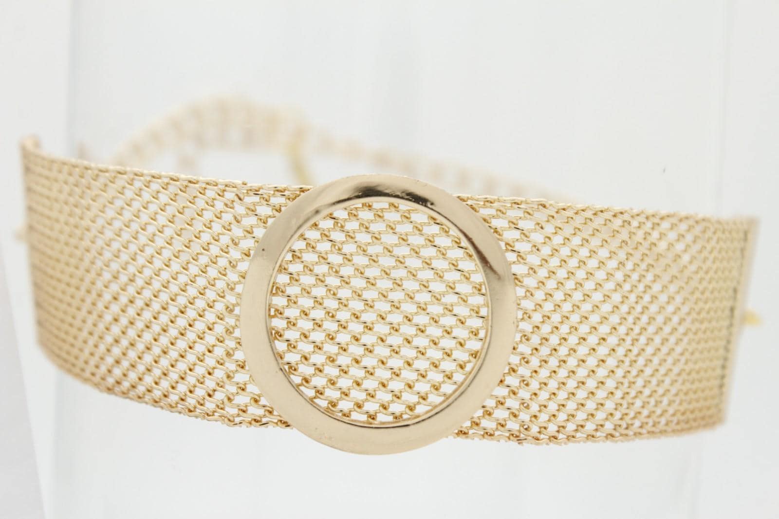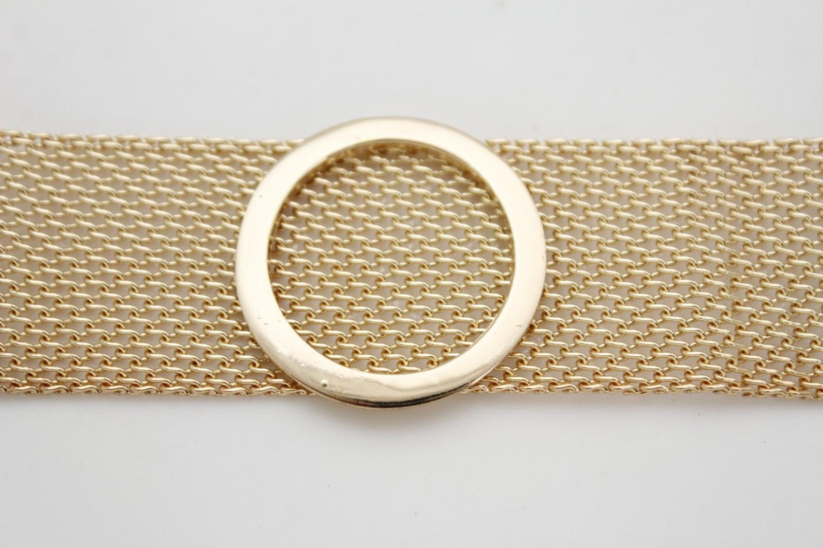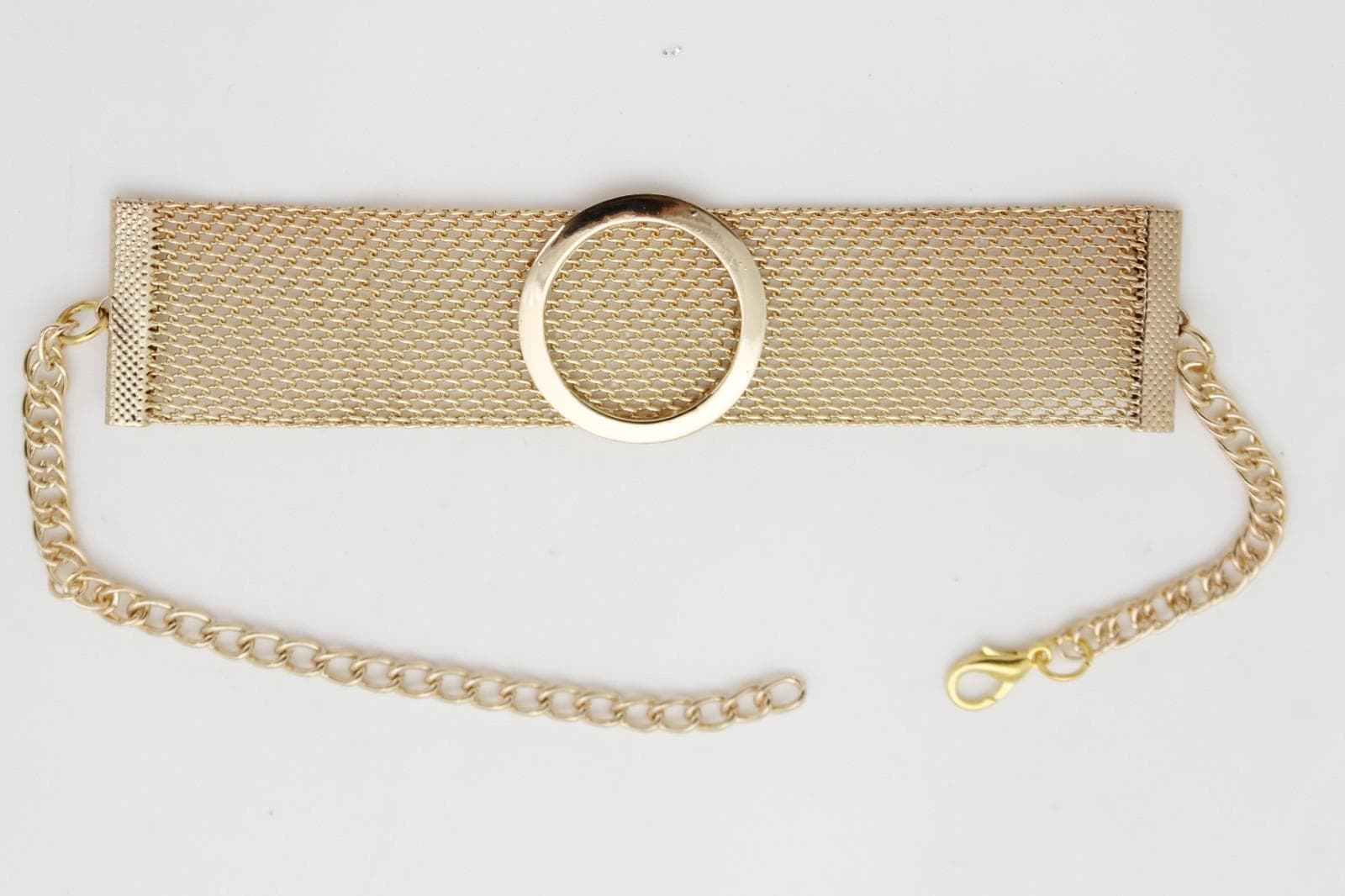 gold color metal chain links and mesh band circle charm