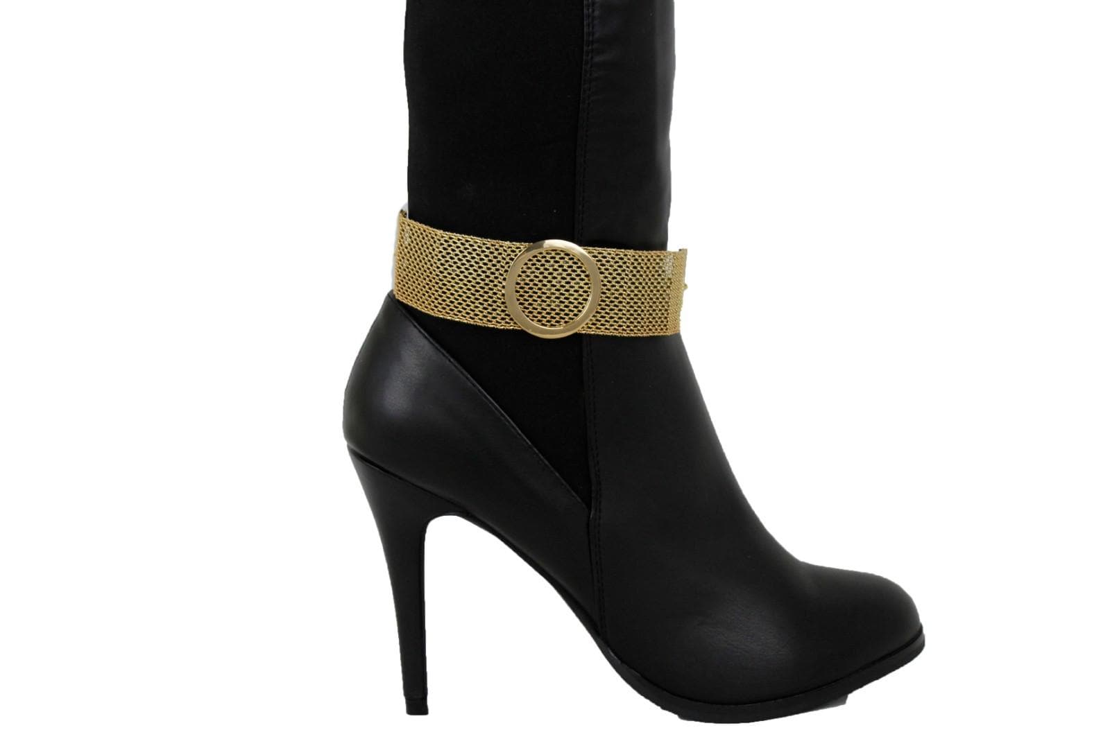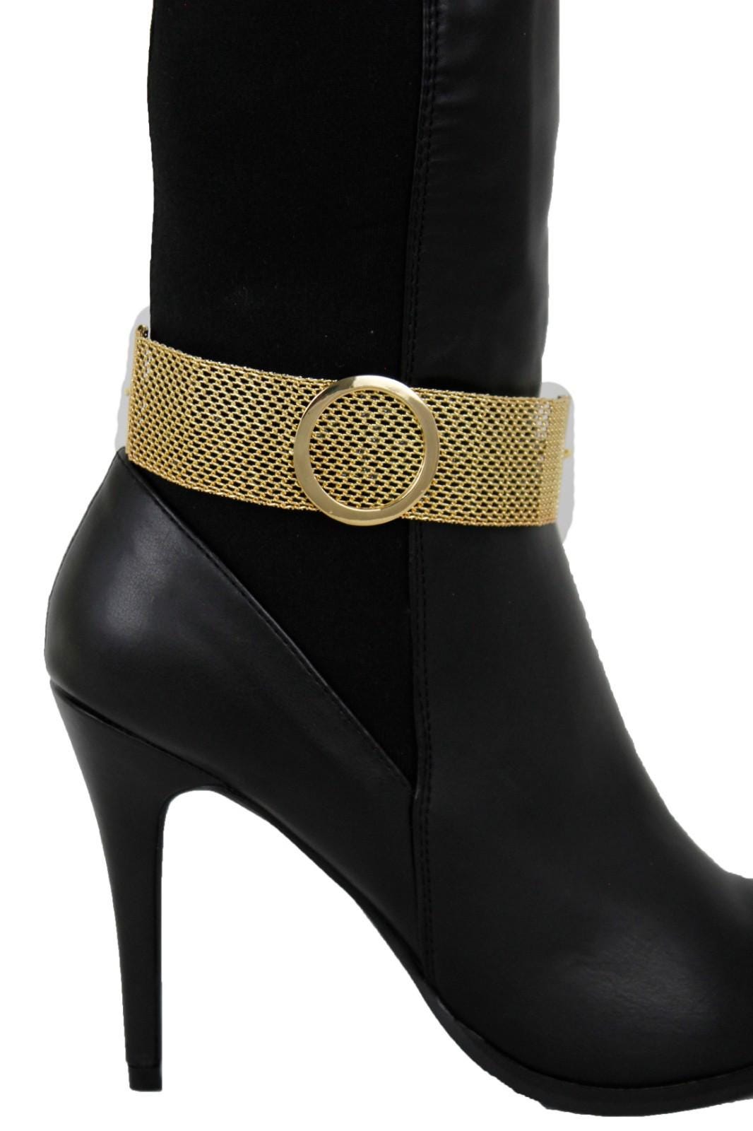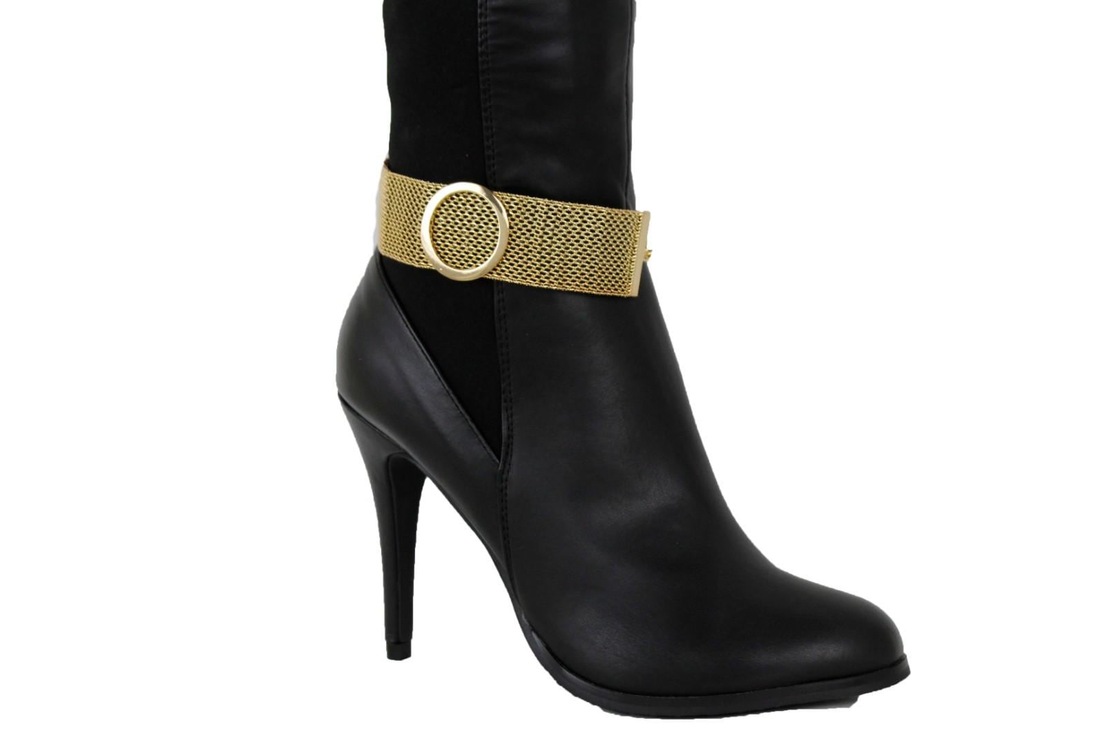 women gold mesh boot chain bracelets handmade USA circle shoe anklet set BC297