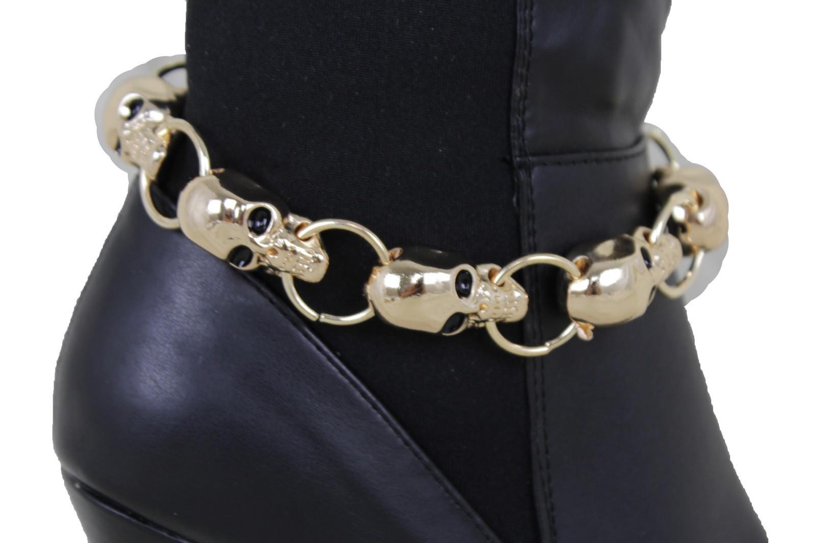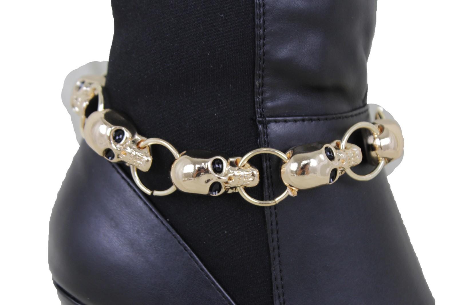 women gold skull boot chain bracelets shoe anklet set handmade in USA