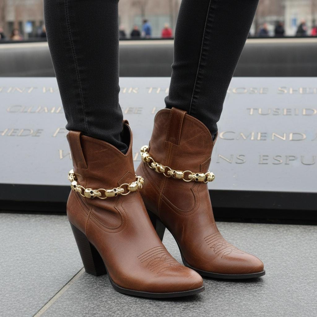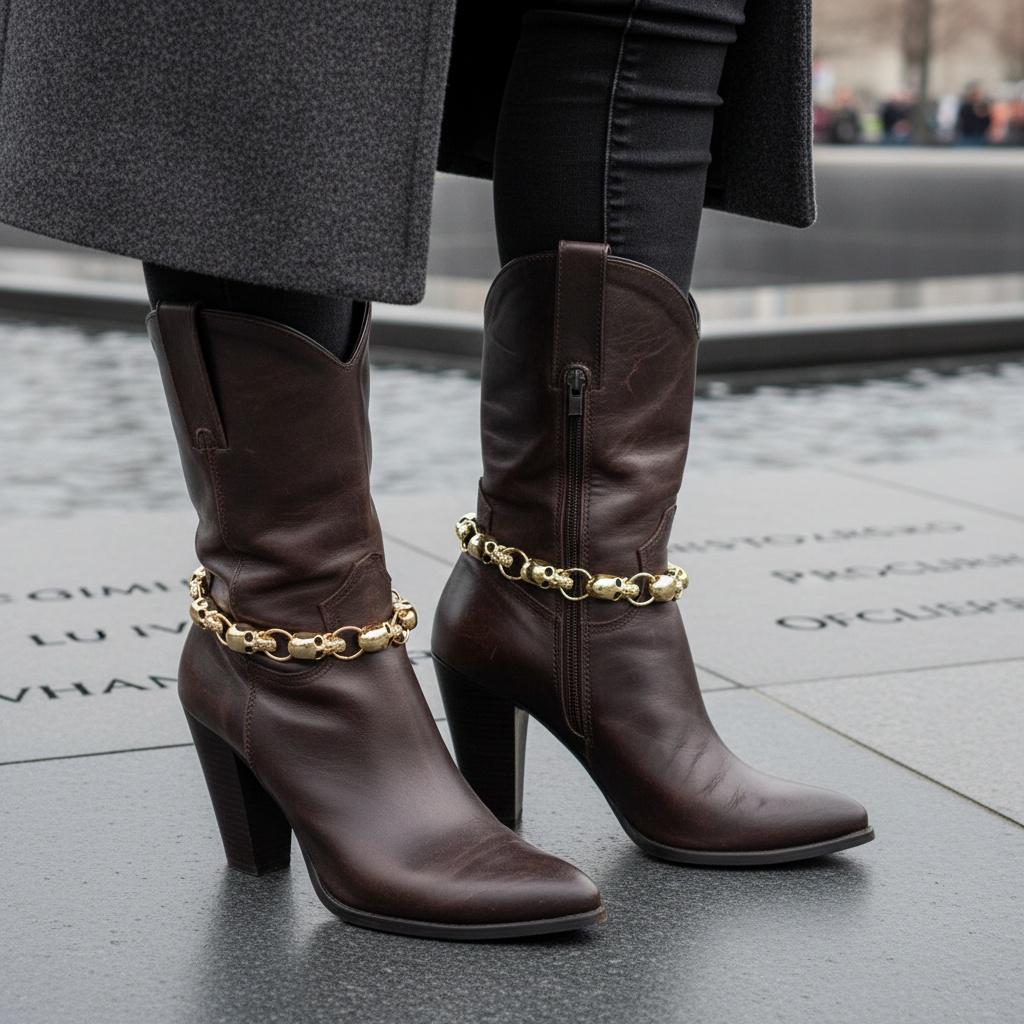 This listing is for a matching 2-piece set, one for each boot. BC300 features polished gold-tone skull links with dark details for a bold fashion look that feels edgy, western, and boutique all at once. These are the kind of boot accessories that instantly make a pair of boots look more styled, more personal, and much more fun.