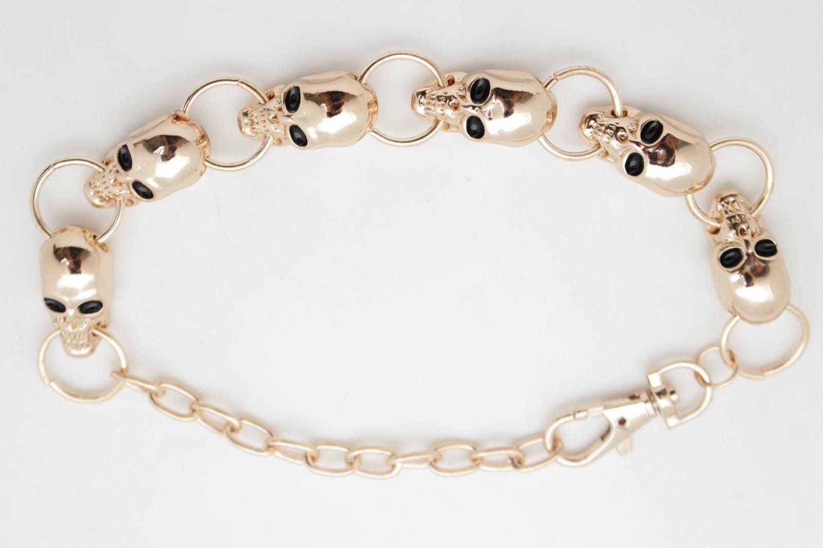 2PCS Women Gold Boot Chain: Skull Charms Gothic Fashion Bracelet SET BC300
