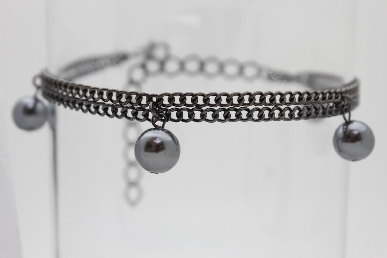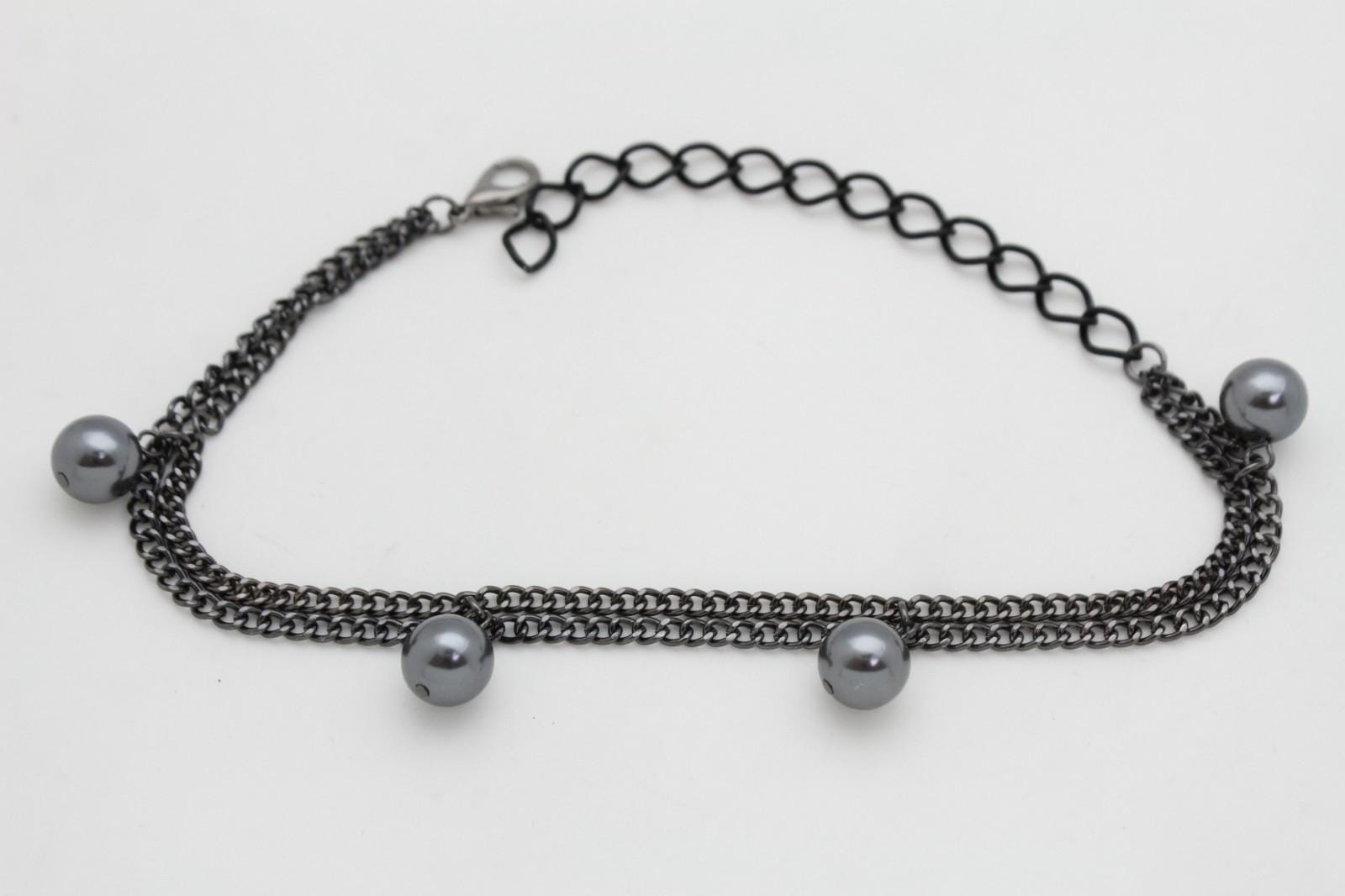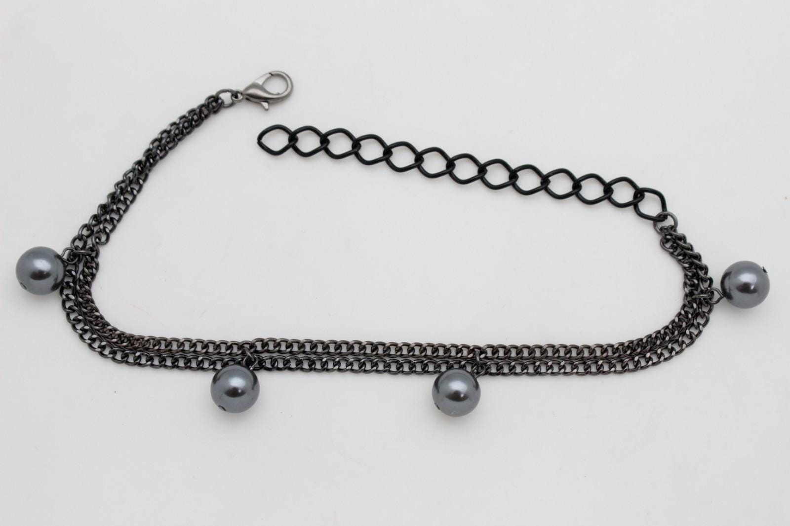 Gunmetal Color Metal Chain, Round Ball Charms, Lobster Clasp, Extension Chain