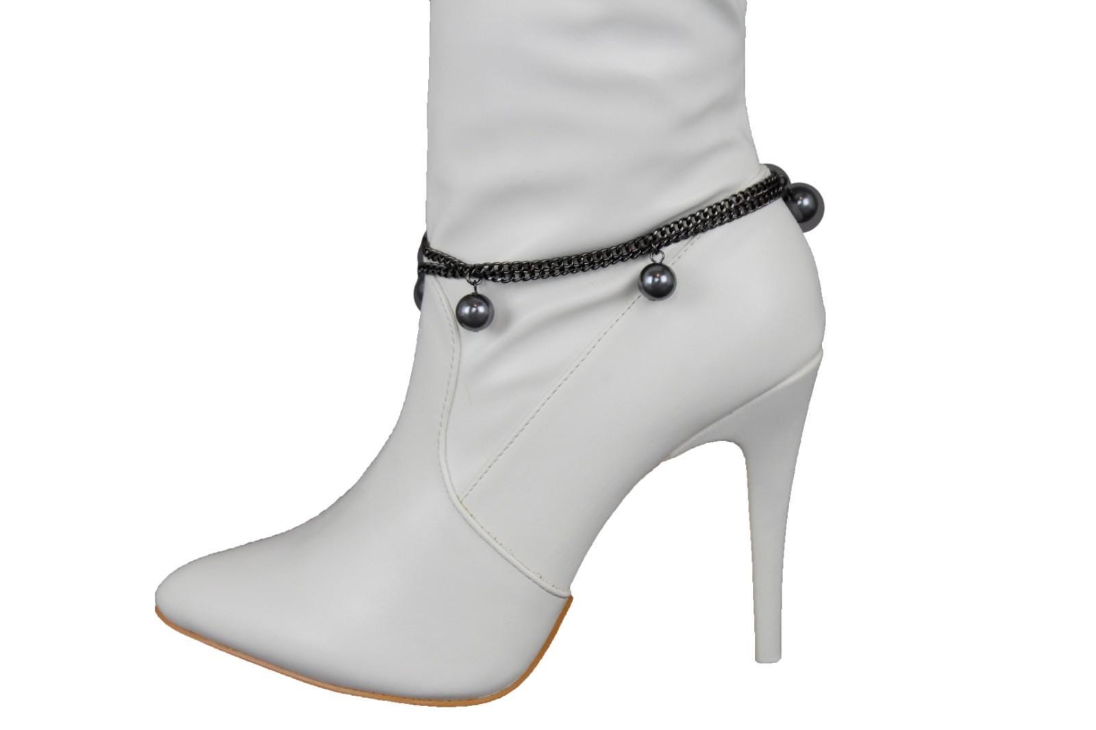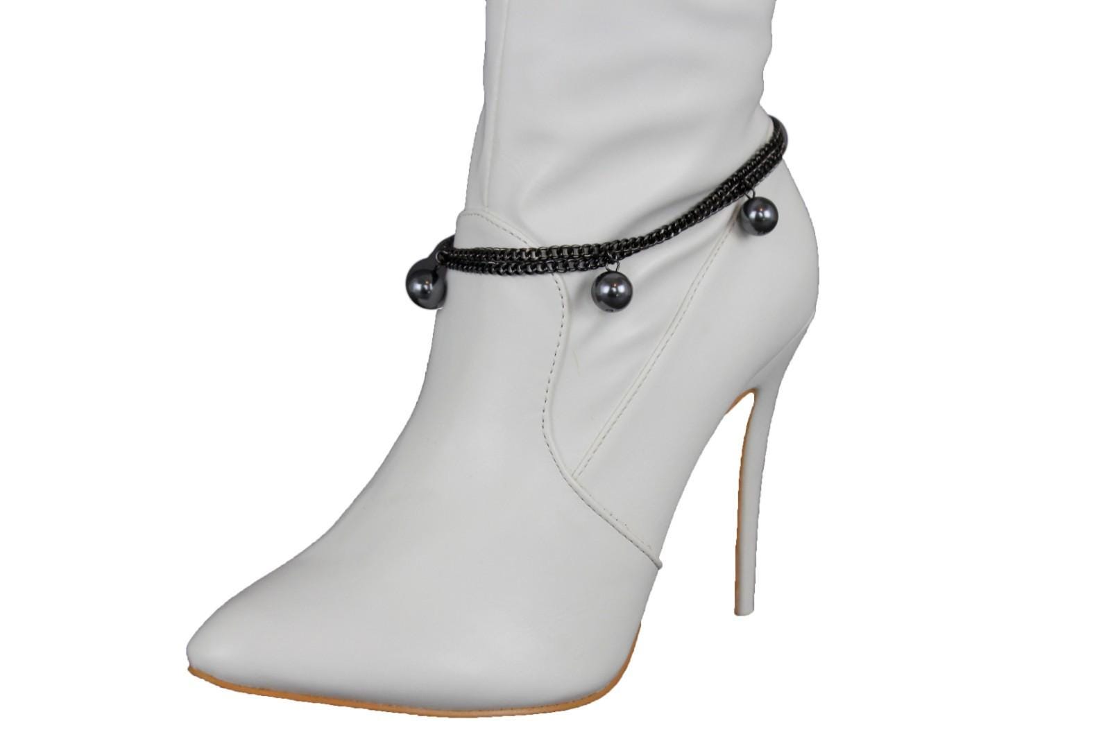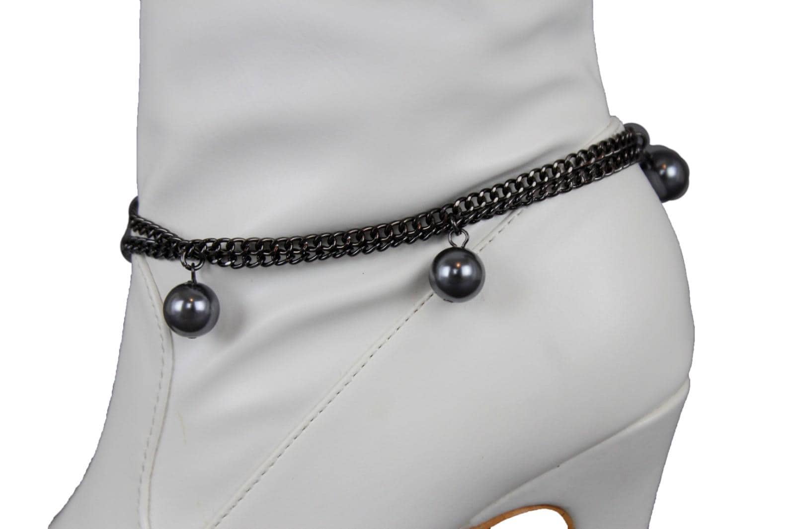 This handmade boot bracelet set features gunmetal pewter-tone layered chains with smooth round ball charms that add movement, contrast, and a sharp fashion edge without making the look feel heavy. It has that perfect mix of western attitude, city styling, boutique detail, and clean modern polish. On black boots it looks sleek. On white boots it pops beautifully. On red, cream, brown, blue, or dressy heeled styles, it gives the whole outfit a stronger finish.