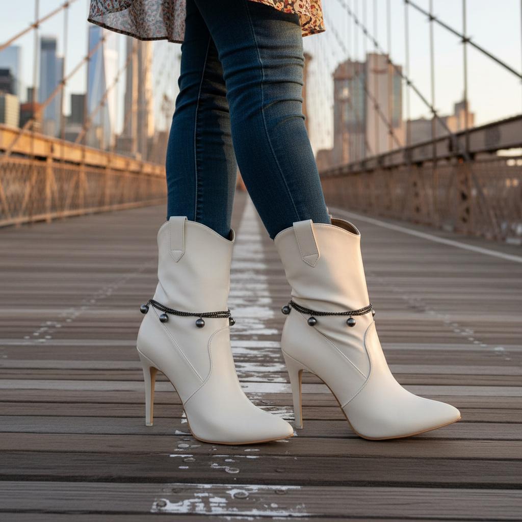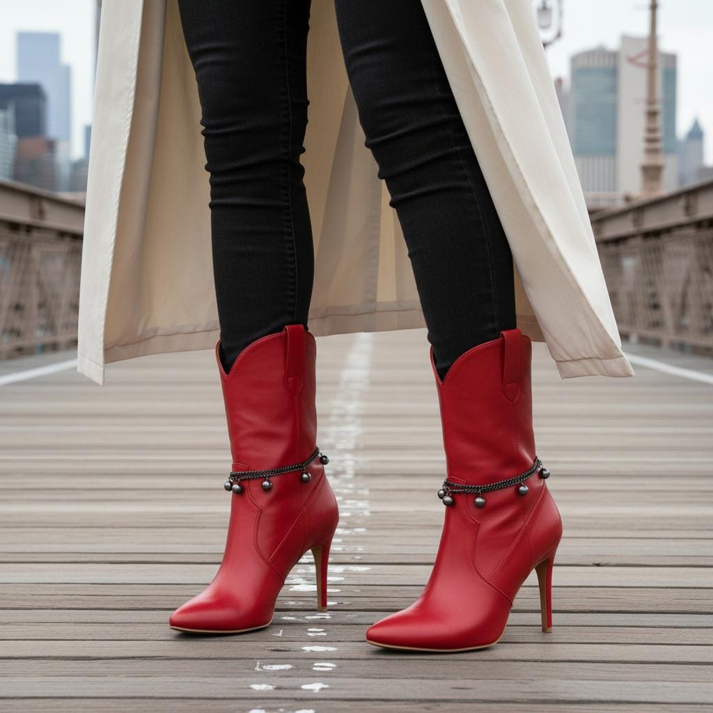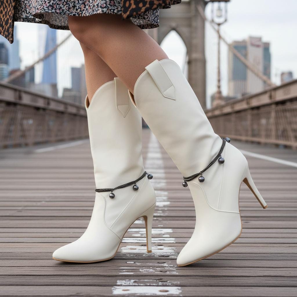 This handmade boot bracelet set features gunmetal pewter-tone layered chains with smooth round ball charms that add movement, contrast, and a sharp fashion edge without making the look feel heavy. It has that perfect mix of western attitude, city styling, boutique detail, and clean modern polish. On black boots it looks sleek. On white boots it pops beautifully. On red, cream, brown, blue, or dressy heeled styles, it gives the whole outfit a stronger finish.
