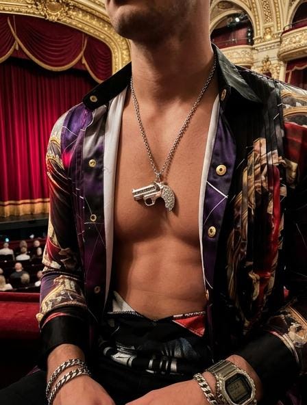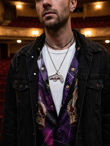 This is the kind of necklace that can completely change the mood of a simple outfit. Throw it on with a tee, denim jacket, hoodie, black layers, or a button-down and it instantly becomes the focal point. It is bold, eye-catching, and unapologetically dramatic in the best way.