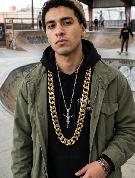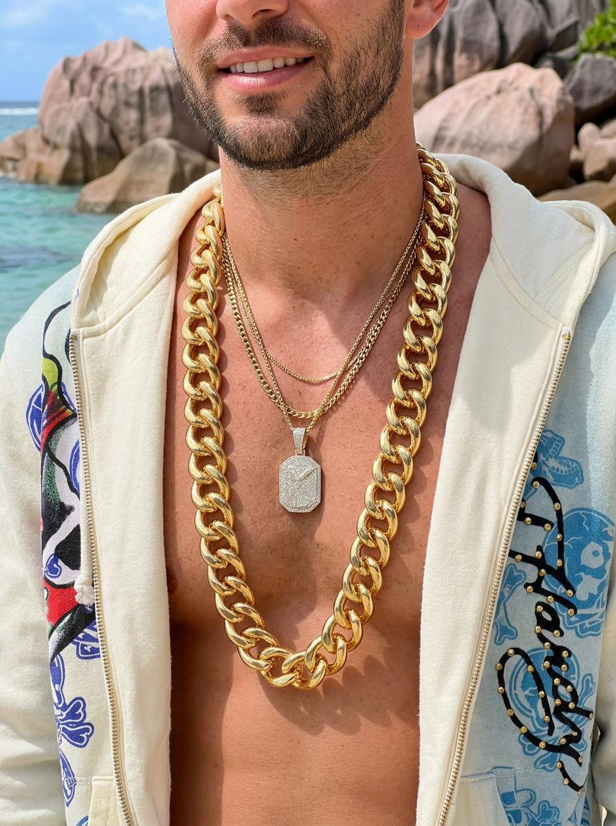 Make your outfit hit harder with this bold extra-long gold-tone chain necklace. This chunky link statement piece brings major hip hop, streetwear, retro, and nightlife energy with a thick polished look that instantly stands out. It is the kind of necklace that can take a simple tee, hoodie, tank, or open jacket and make the whole outfit feel more styled, more confident, and more fashion-forward.